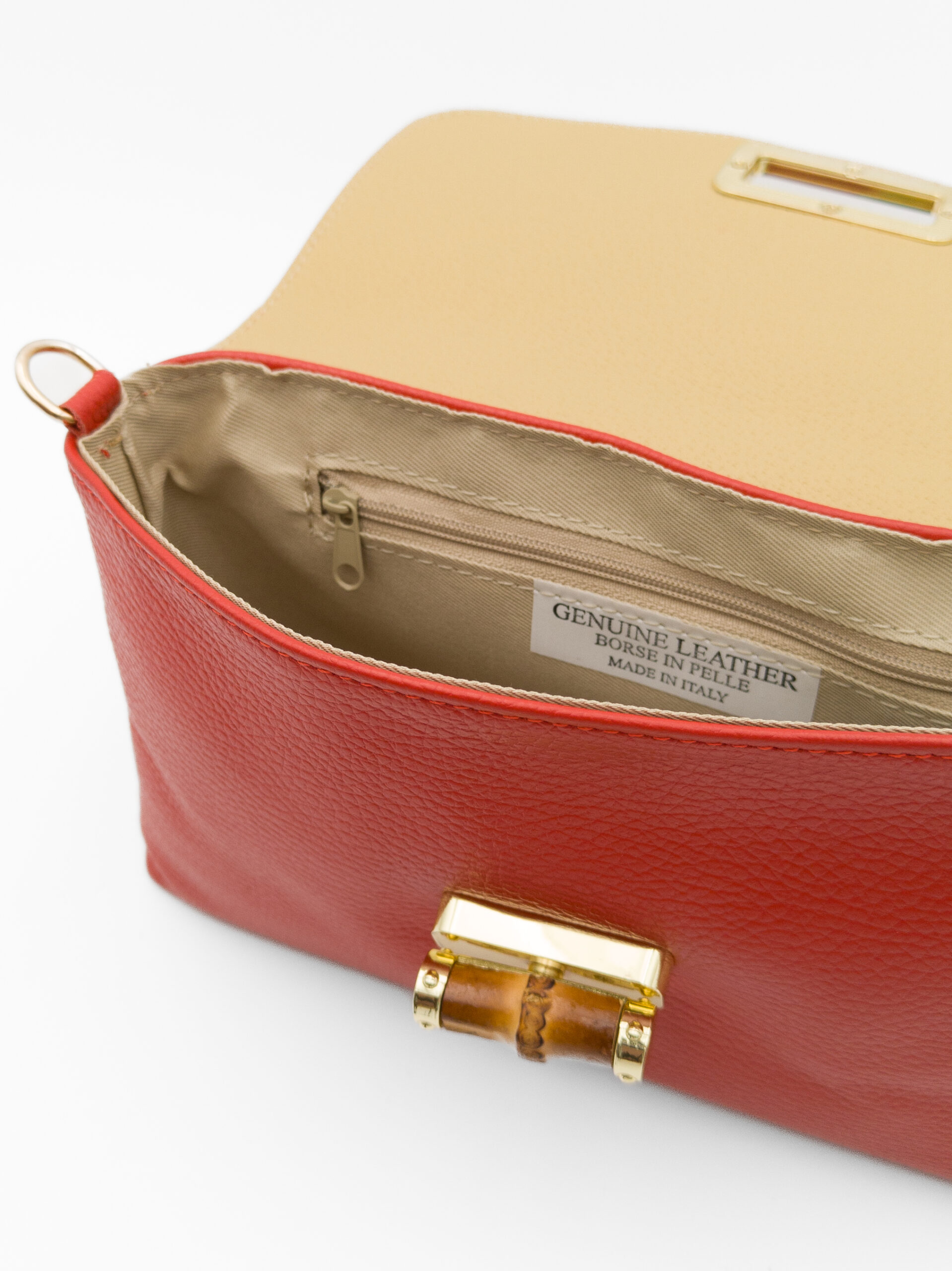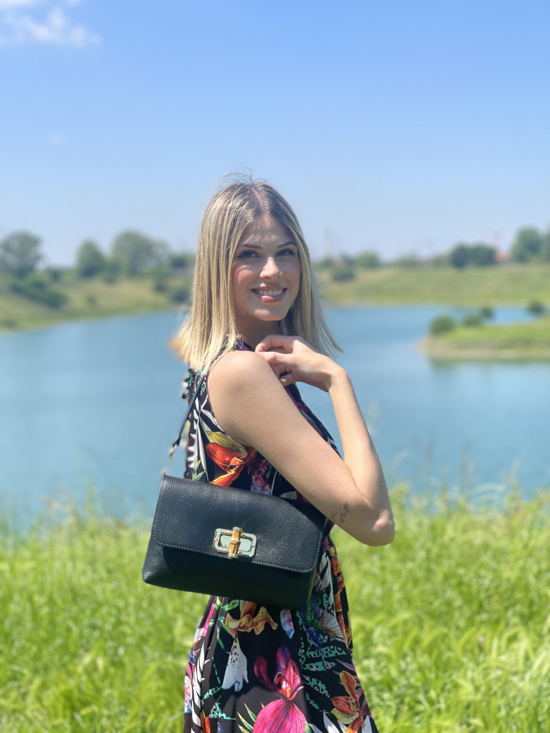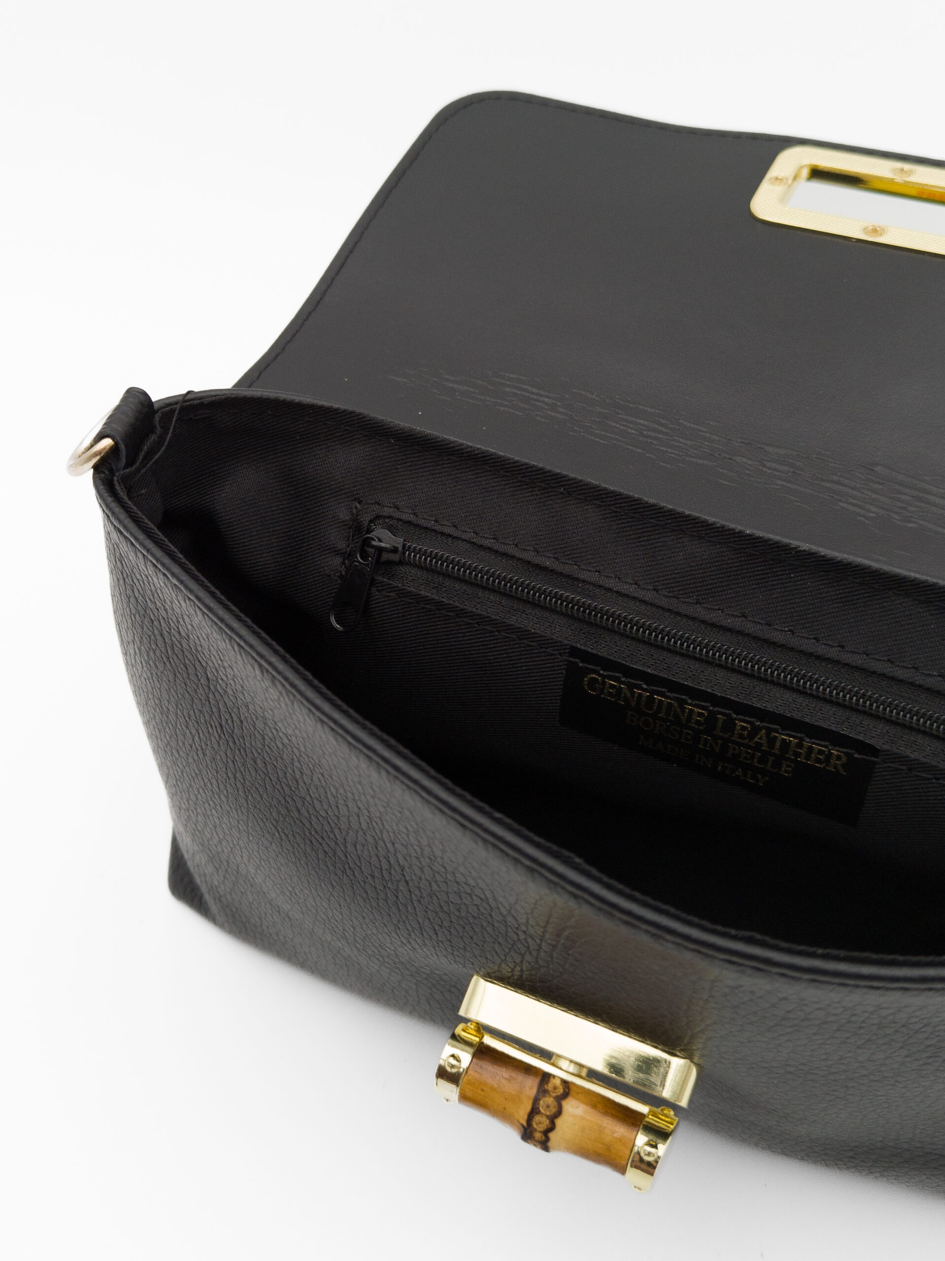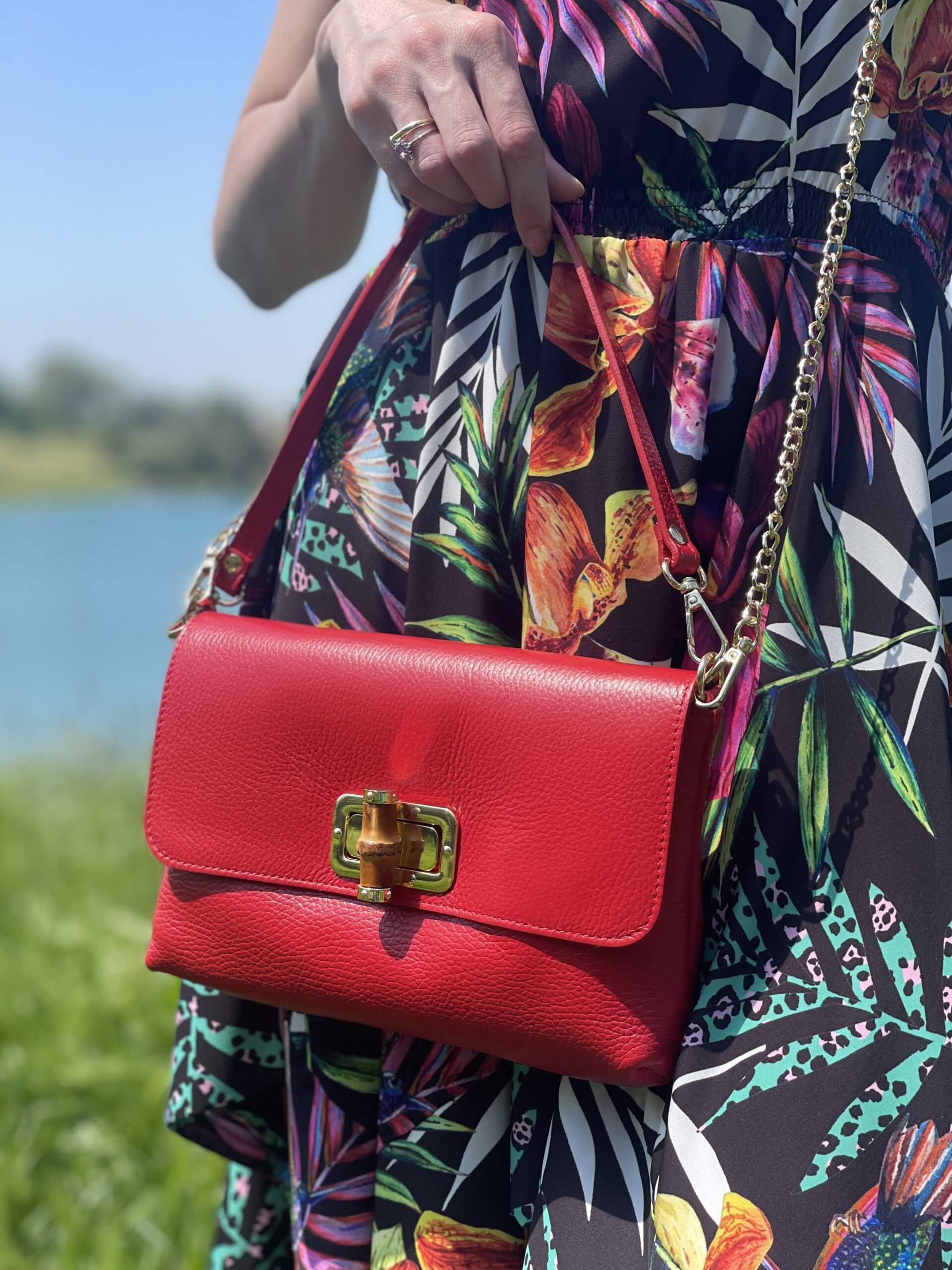 Dal design sofisticato e compatto, Bali è una borsa in vera pelle Made in Italy che unisce artigianalità e raffinatezza in ogni dettaglio. La protagonista assoluta è la chiusura turn lock in vero bambù, elemento naturale che dona un tocco esotico e lussuoso.