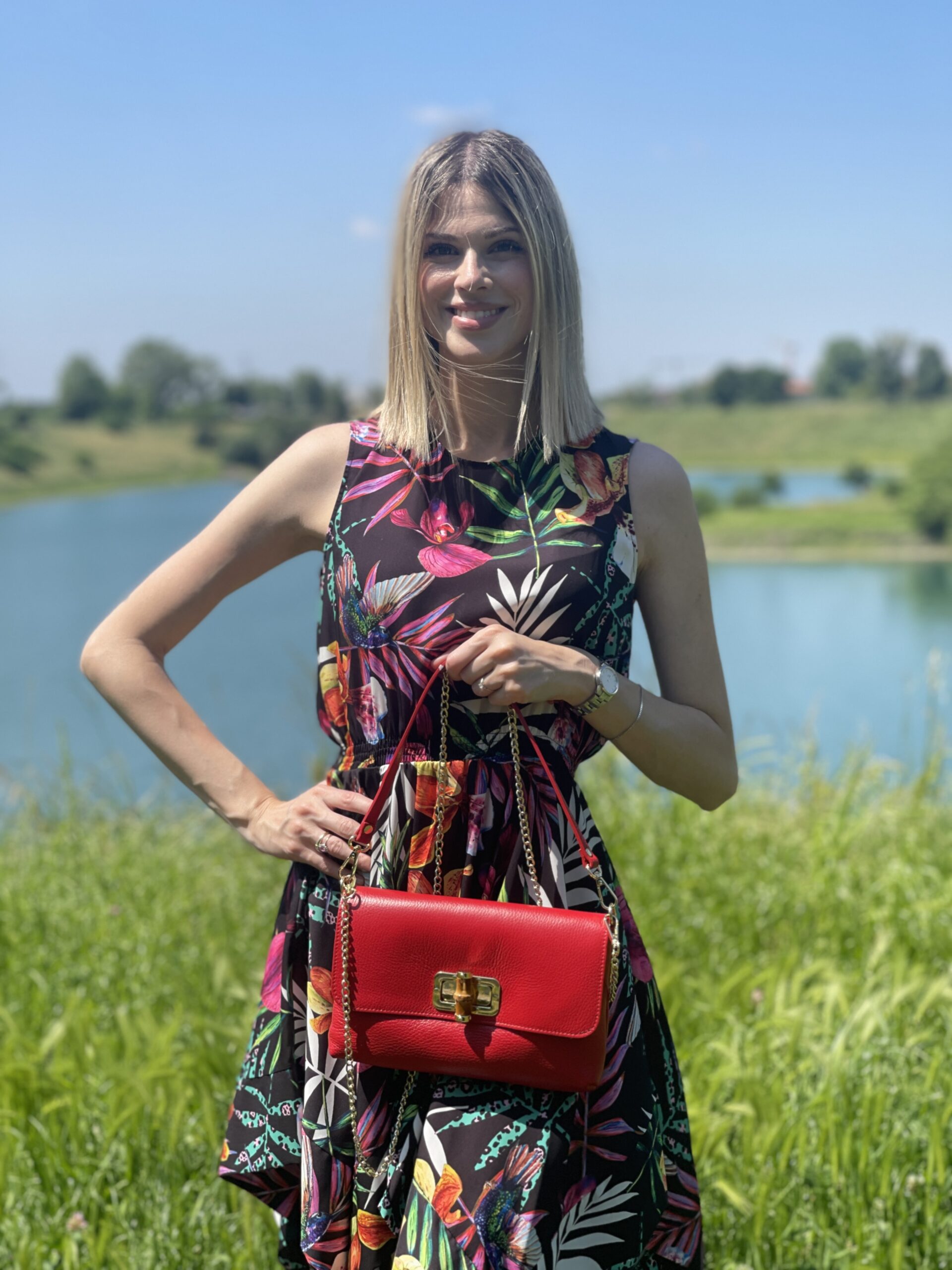Perfetta per la sera ma versatile anche di giorno, Bali si porta con la tracolla corta in pelle per uno stile più classico oppure con la catena dorata lunga per un look elegante e luminoso. L’interno è foderato e dotato di taschina con zip per tenere tutto in ordine.