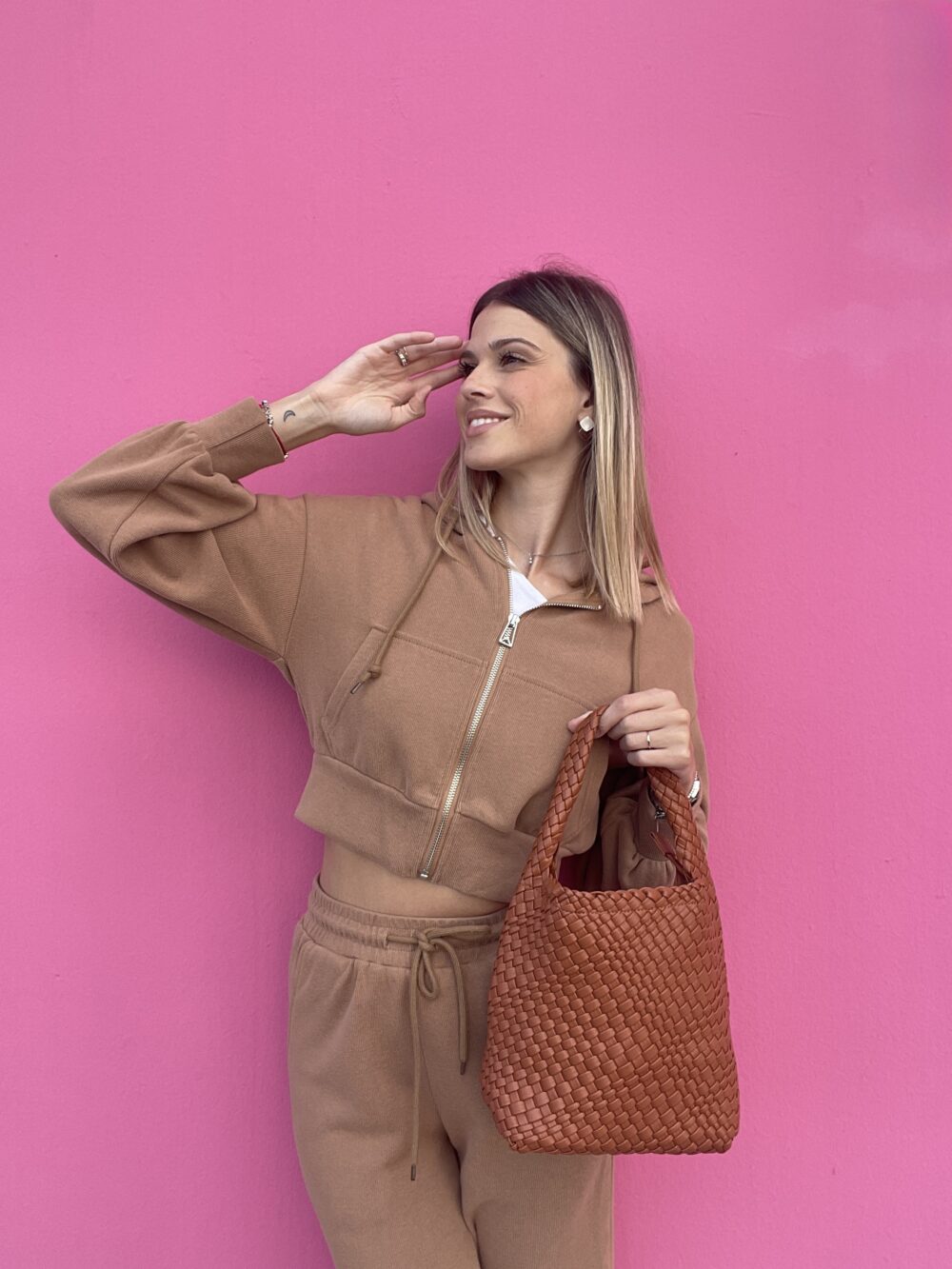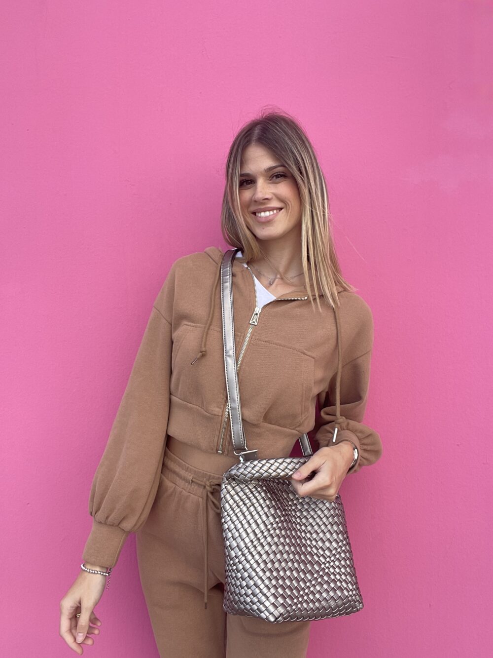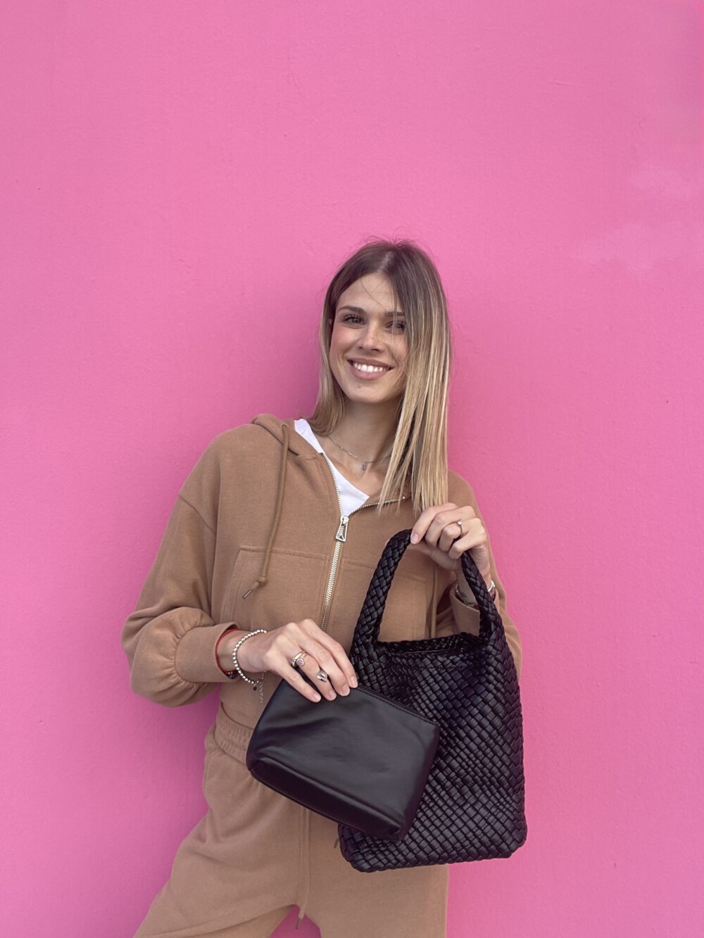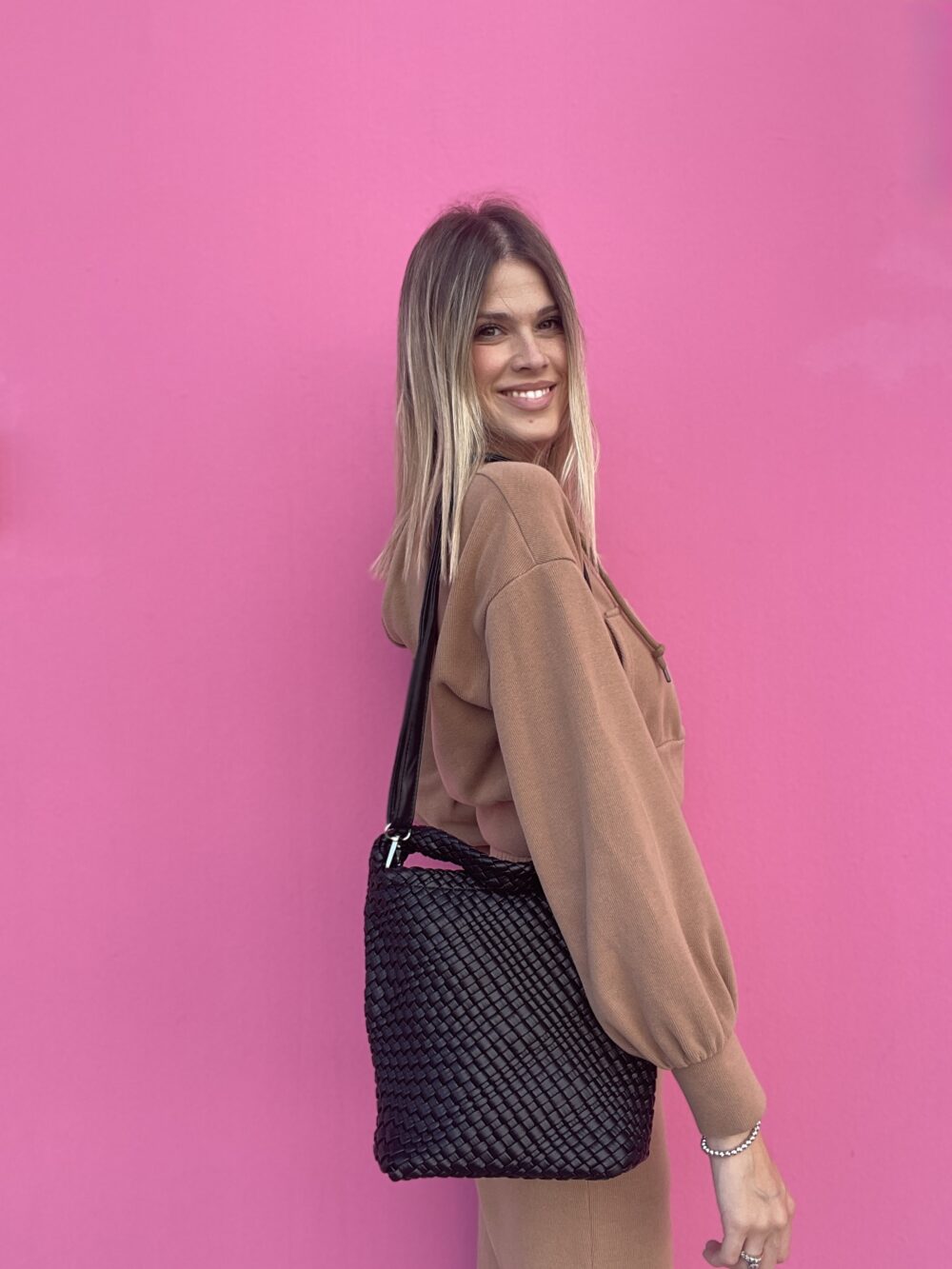 Bea è il secchiello che unisce praticità e stile con un tocco pop. La sua lavorazione a intreccio lo rende originale e versatile, perfetto da portare ogni giorno con look casual o più curati. Grazie al manico e alla tracolla regolabile, puoi indossarlo come preferisci, senza rinunciare alla comodità.