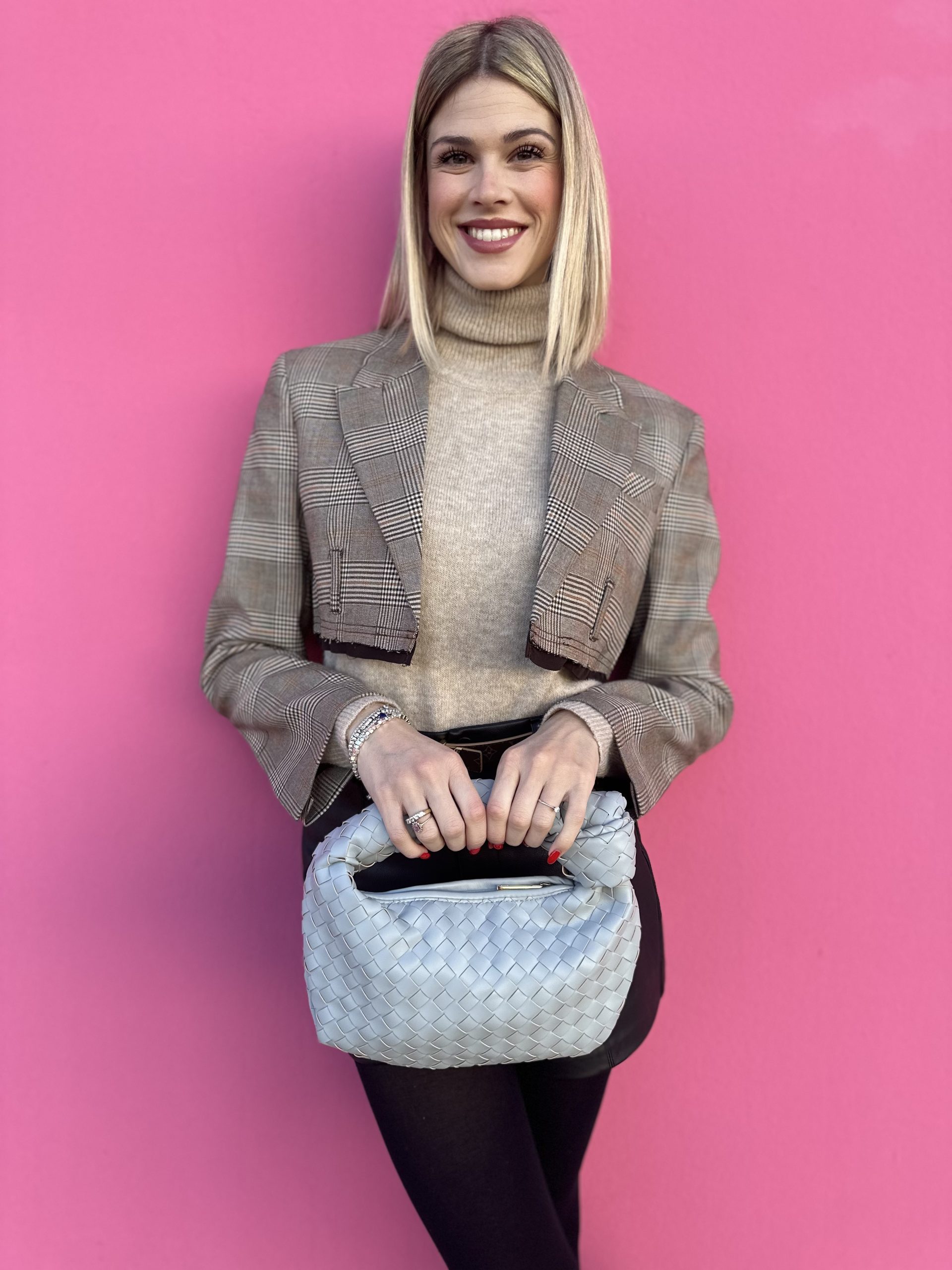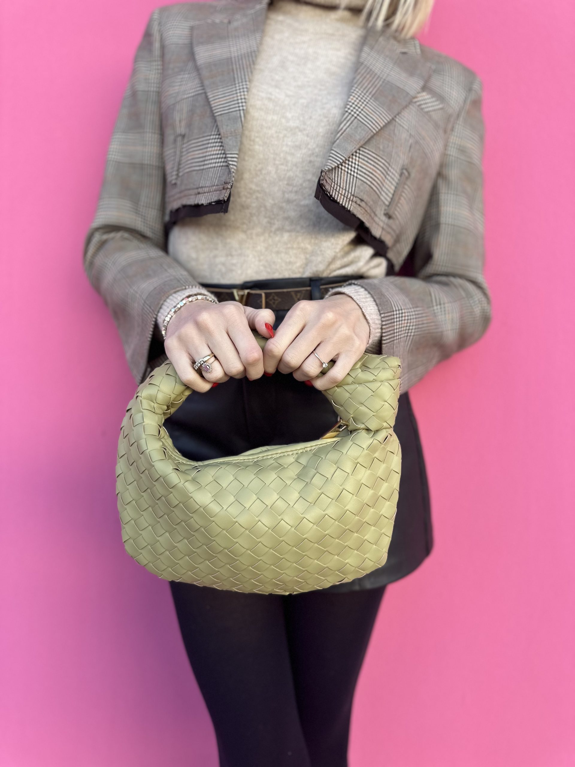 Borsa “NODO” in Similpelle Intrecciata con Nodo sul manico – Eleganza e Versatilità