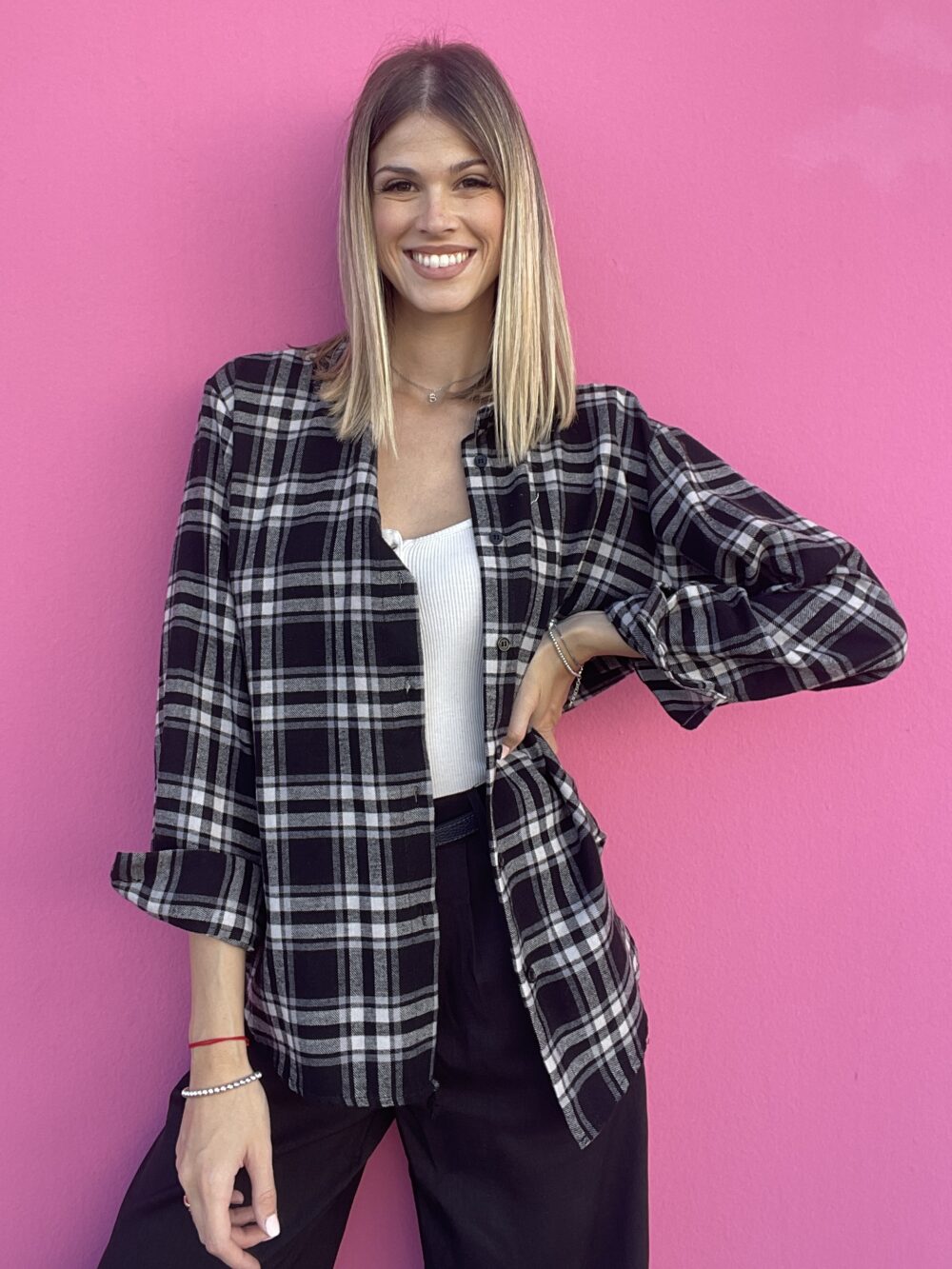 La Camicia a Quadri è il capo che non può mancare nel guardaroba autunnale. Realizzata in morbido misto cotone, abbina comfort e praticità a un tocco di femminilità grazie al taglio leggermente sciancrato che valorizza la silhouette. I quadri, intramontabili e versatili, richiamano l’atmosfera della stagione, regalando un look casual ma curato. Disponibile in taglia unica, si adatta con naturalezza a diverse fisicità.