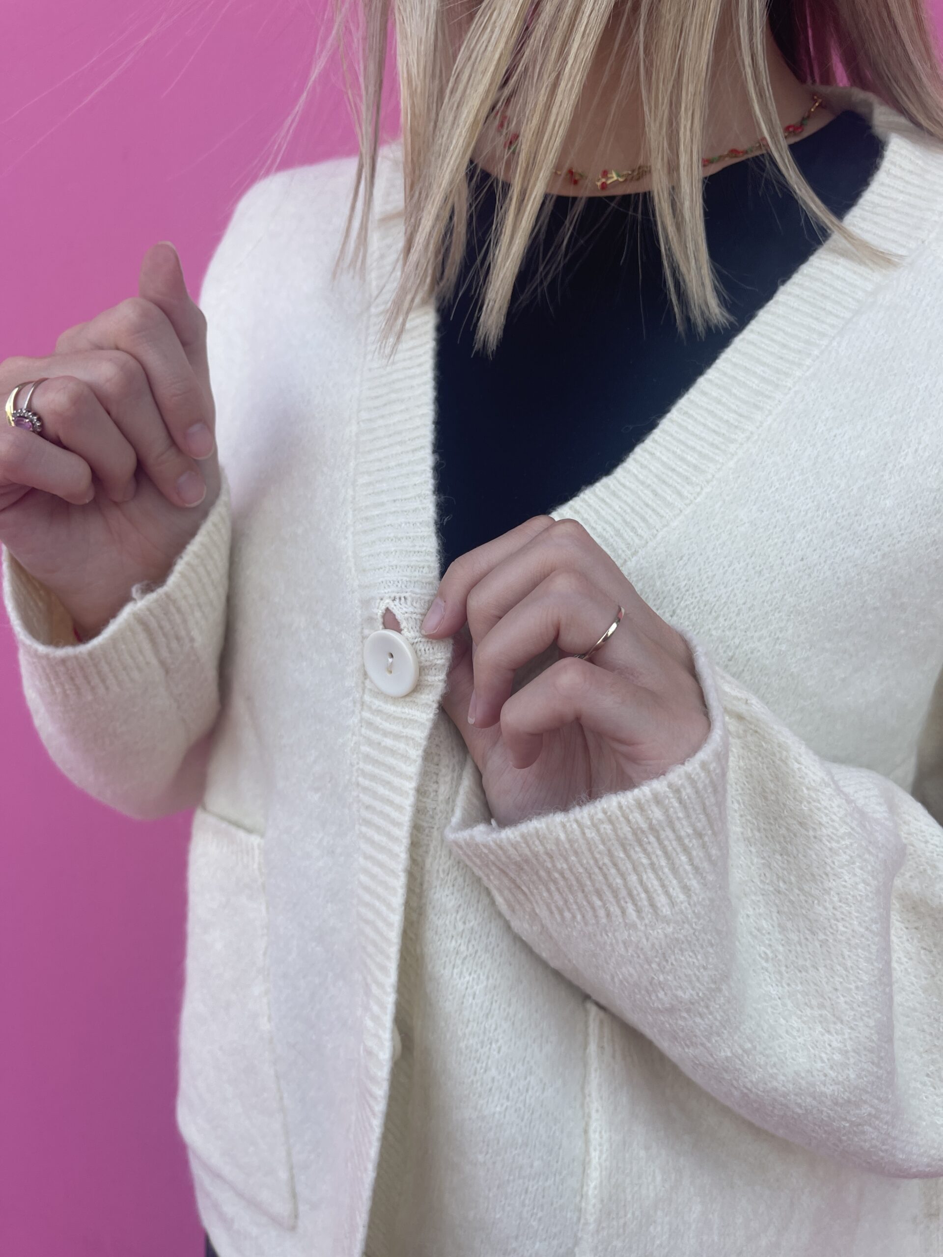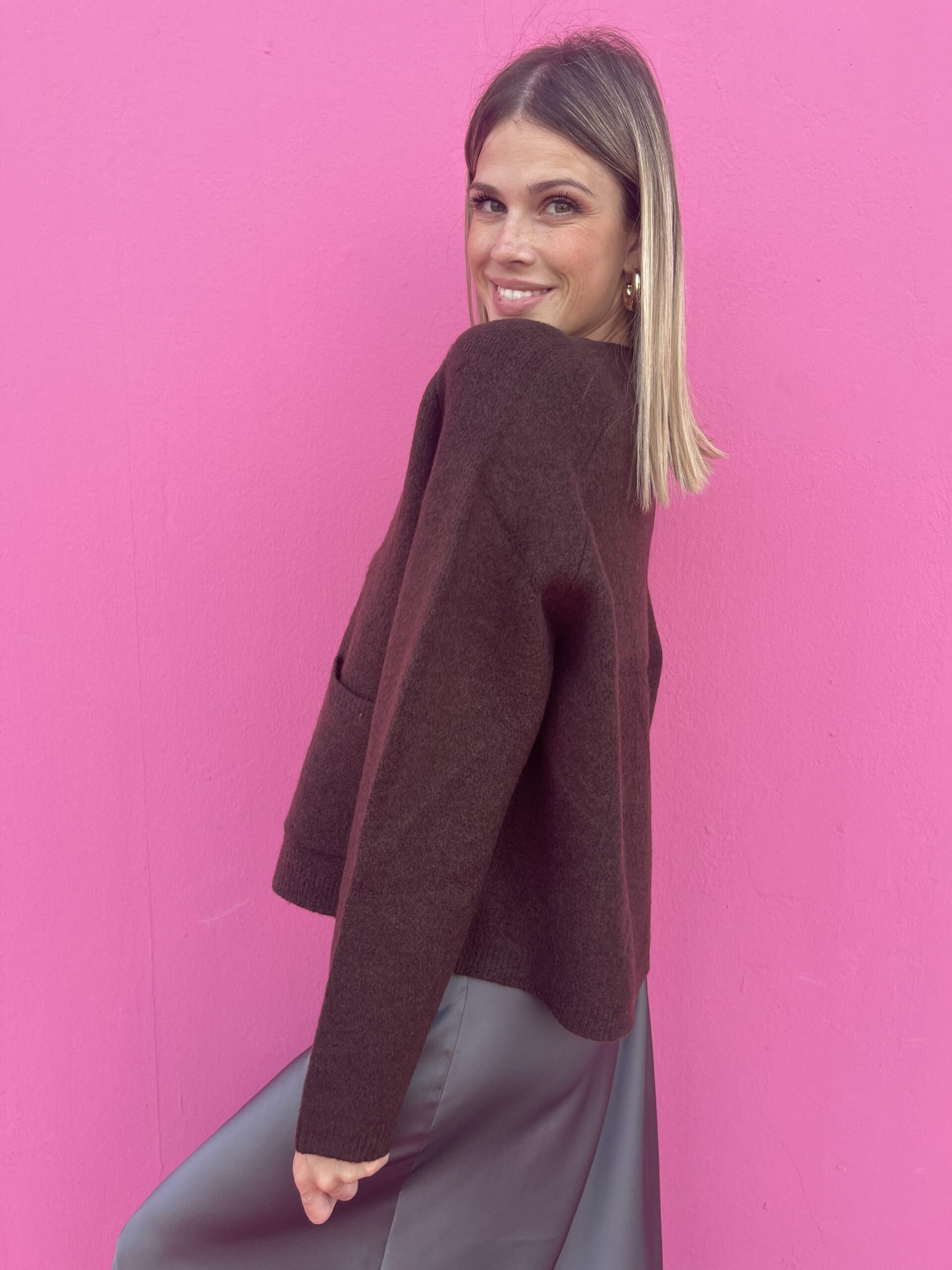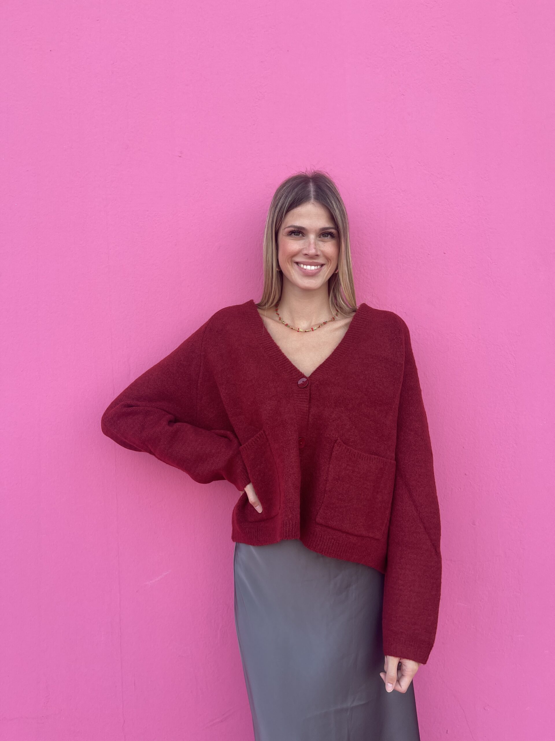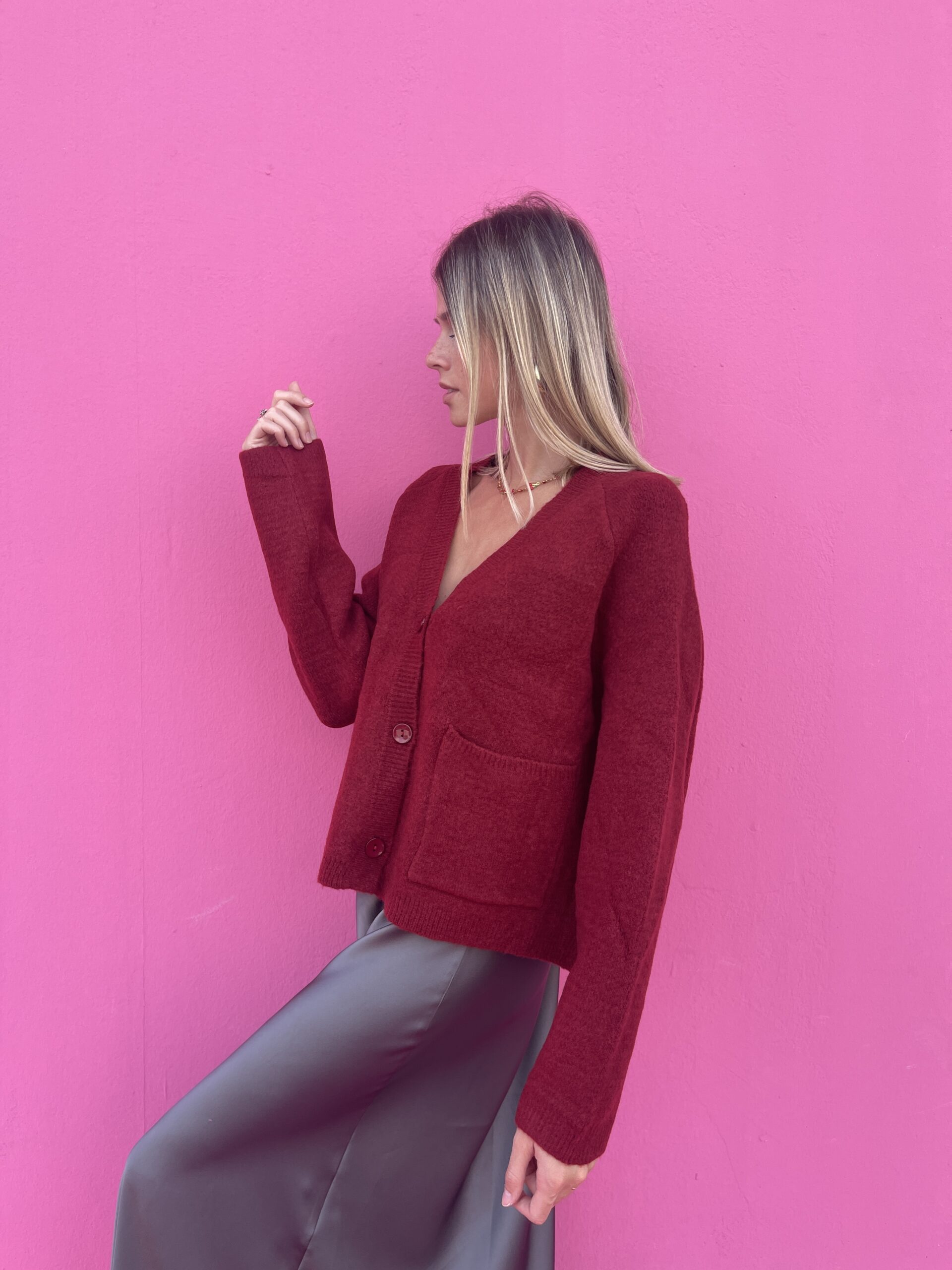 Scopri il nostro Cardigan con scollo a V, un capo perfetto per aggiungere un tocco di eleganza semplice al tuo guardaroba. Con i suoi tre bottoni e le due pratiche tasche frontali, unisce stile e funzionalità, avvolgendo con comfort le giornate più fresche. Ideale da indossare da solo o sopra una camicia o un top, questo cardigan diventa il tuo alleato quotidiano per look raffinati ma naturali.