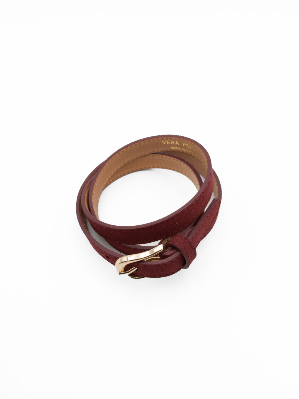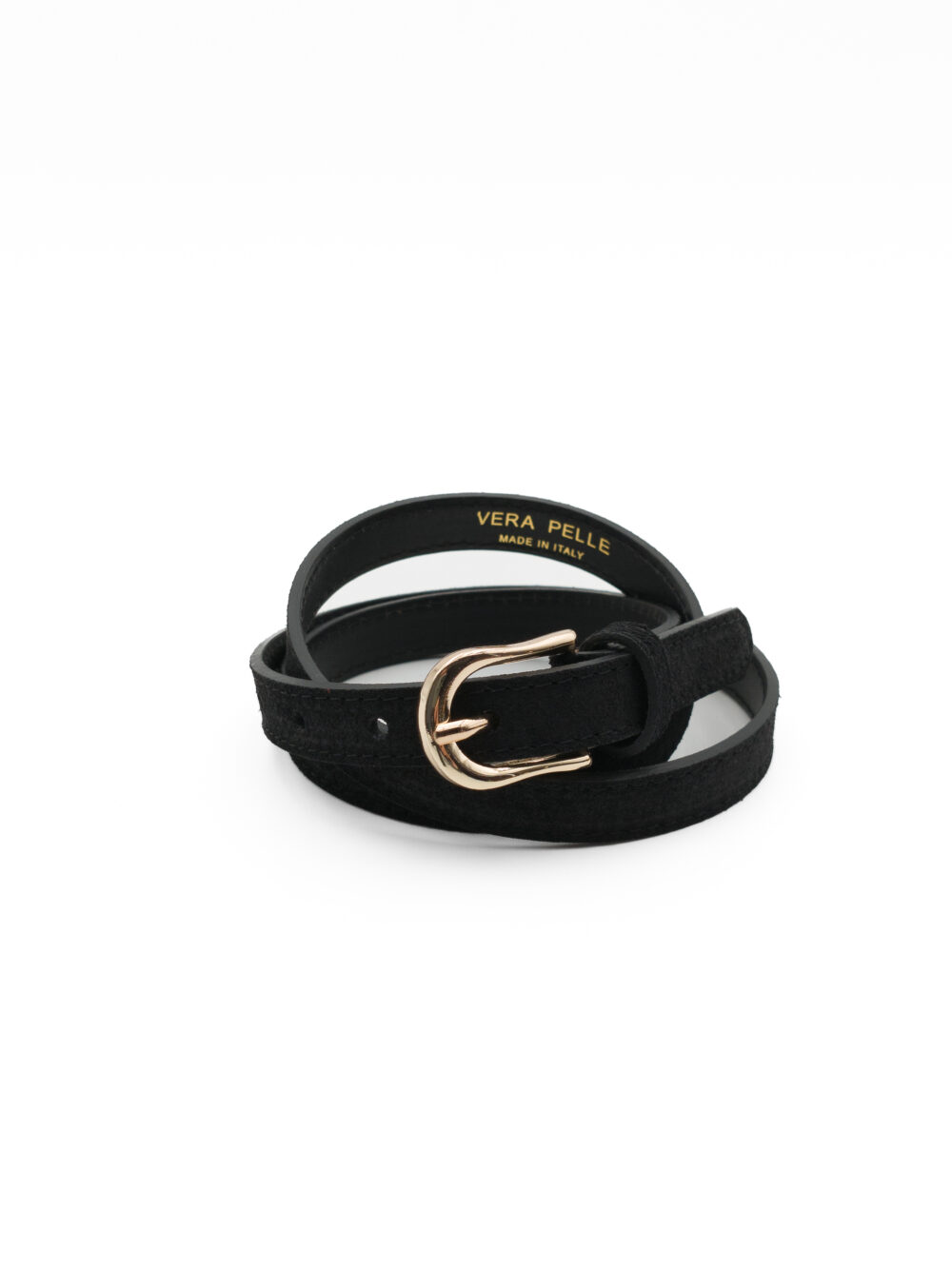 Cintura in vera pelle SCAMOSCIATA, Made in Italy, dal design essenziale e raffinato. Lunghezza 114 cm e larghezza 1,8 cm, con possibilità di accorciarla per adattarla perfettamente alla tua misura. L’hardware gold aggiunge un dettaglio elegante e luminoso, mentre la disponibilità in vari colori permette di abbinarla facilmente a ogni outfit, dal casual al formale. Un accessorio versatile e senza tempo, ideale per valorizzare qualsiasi look con un tocco di classe.