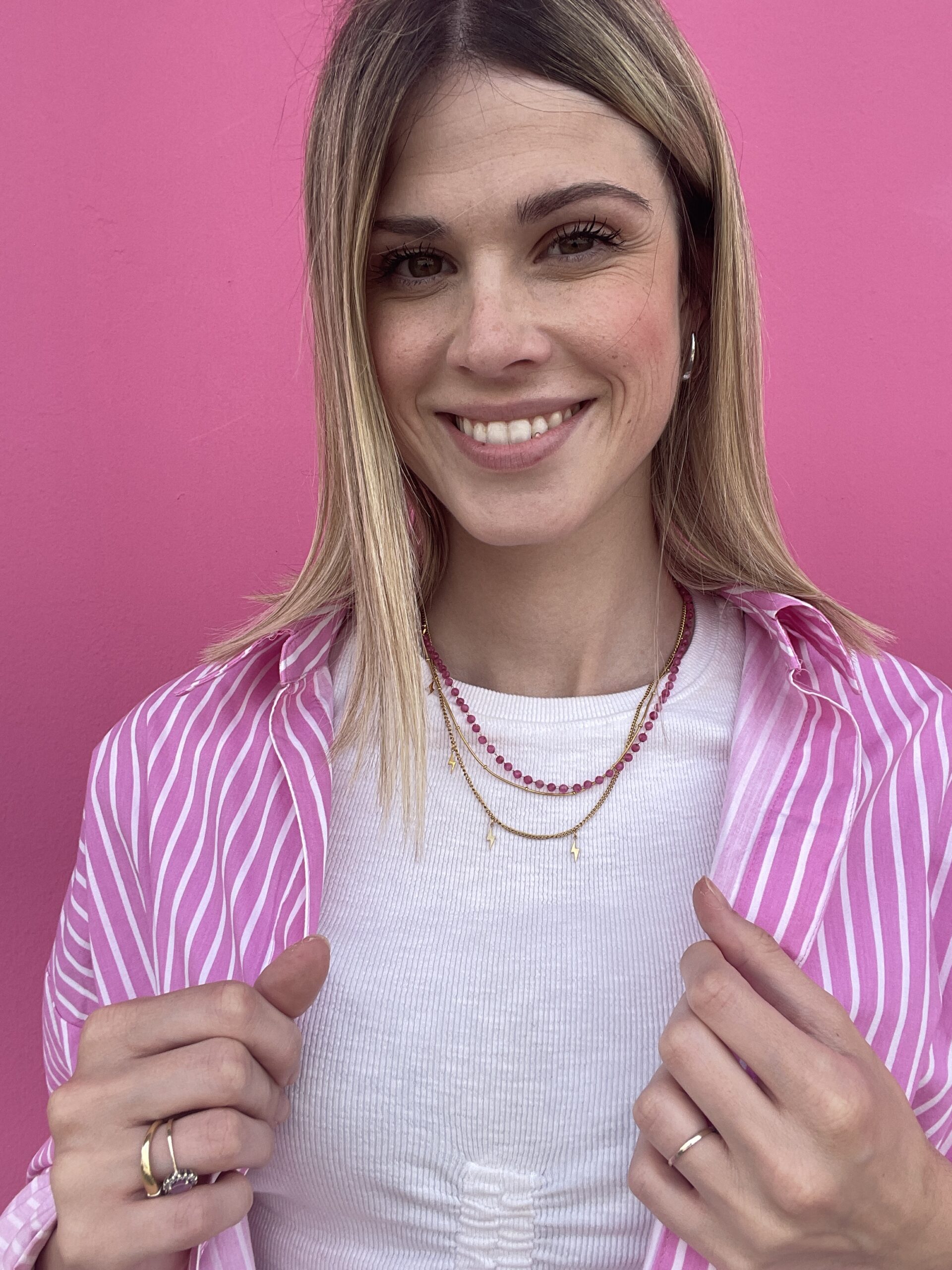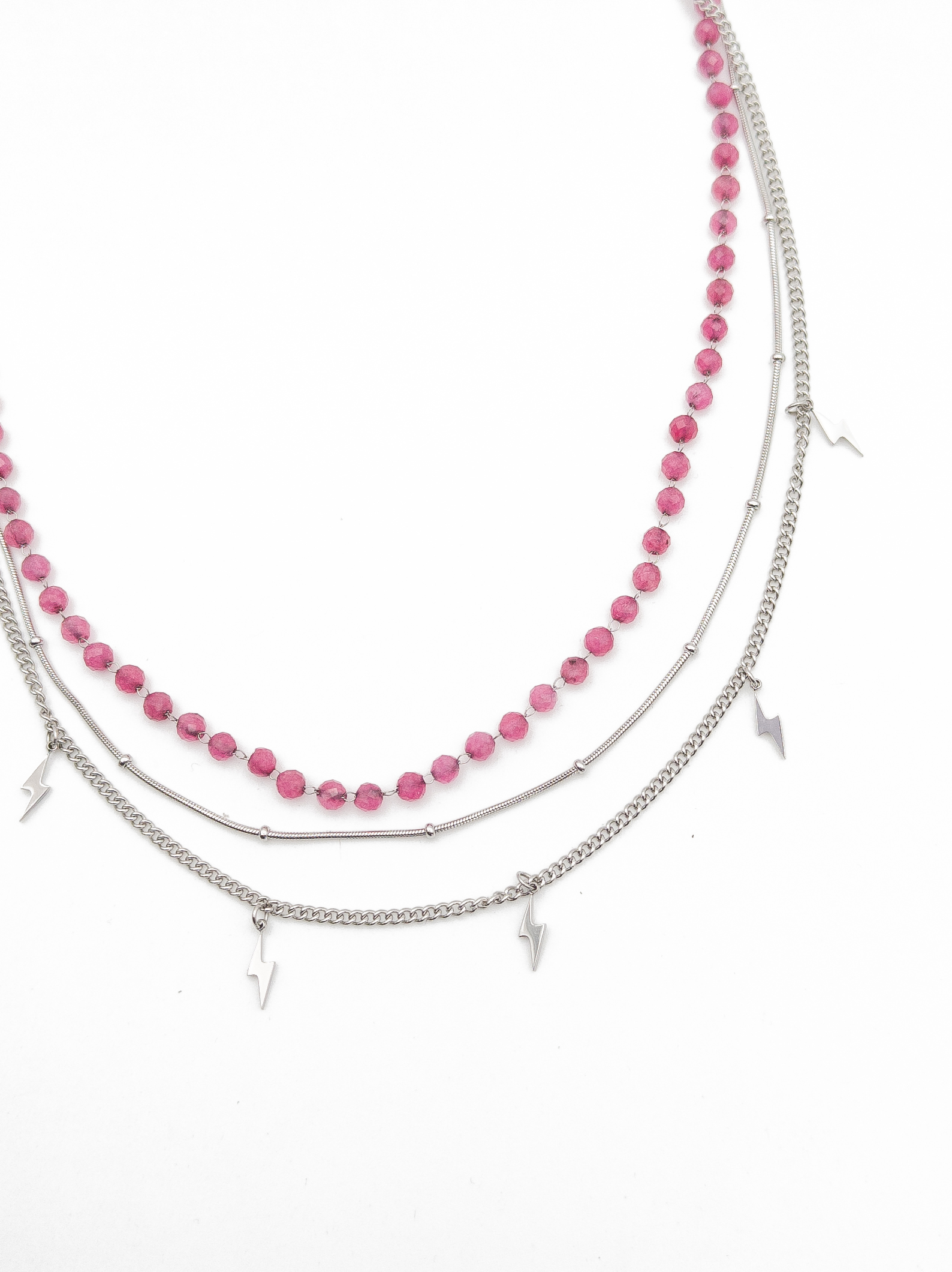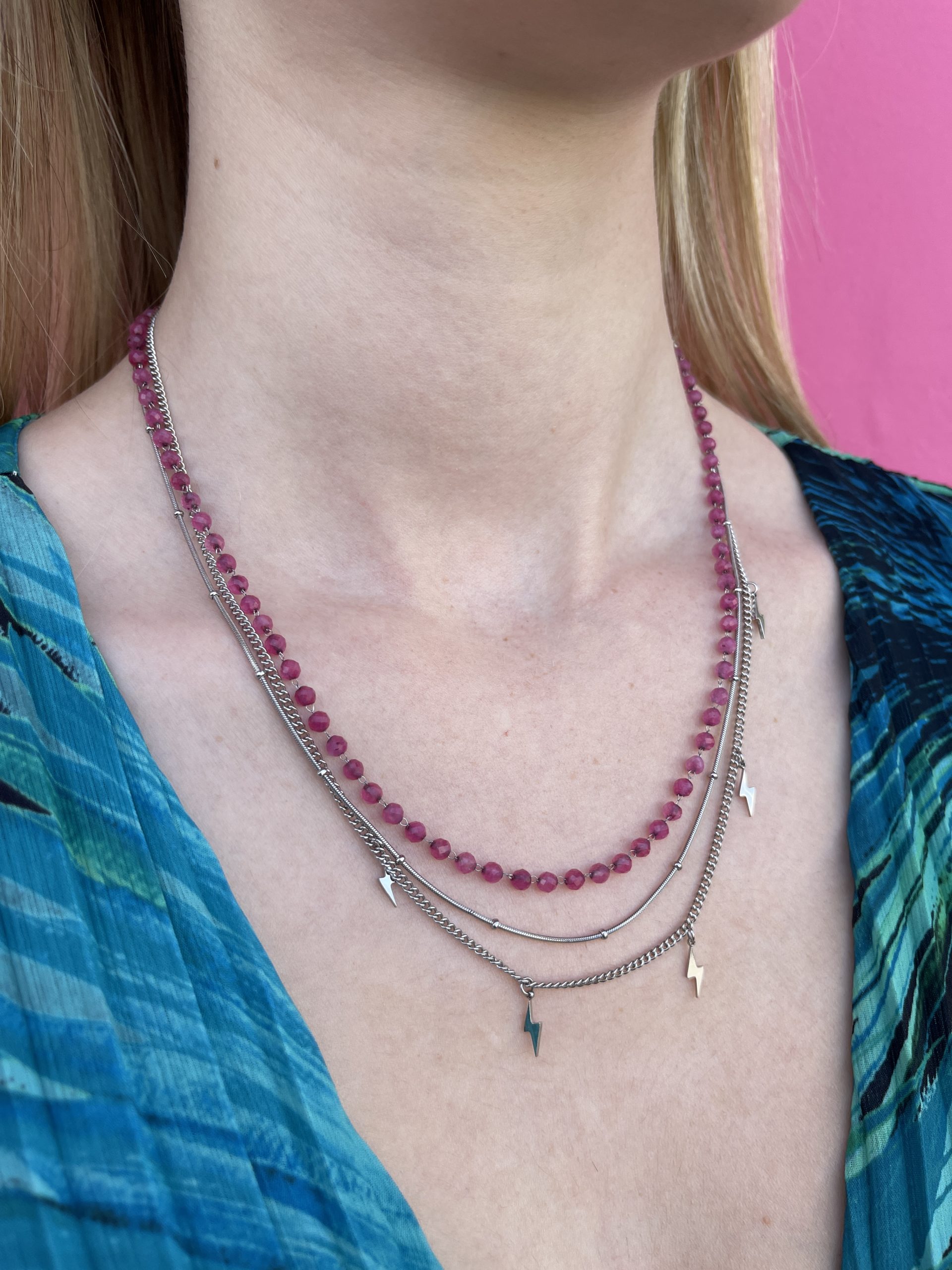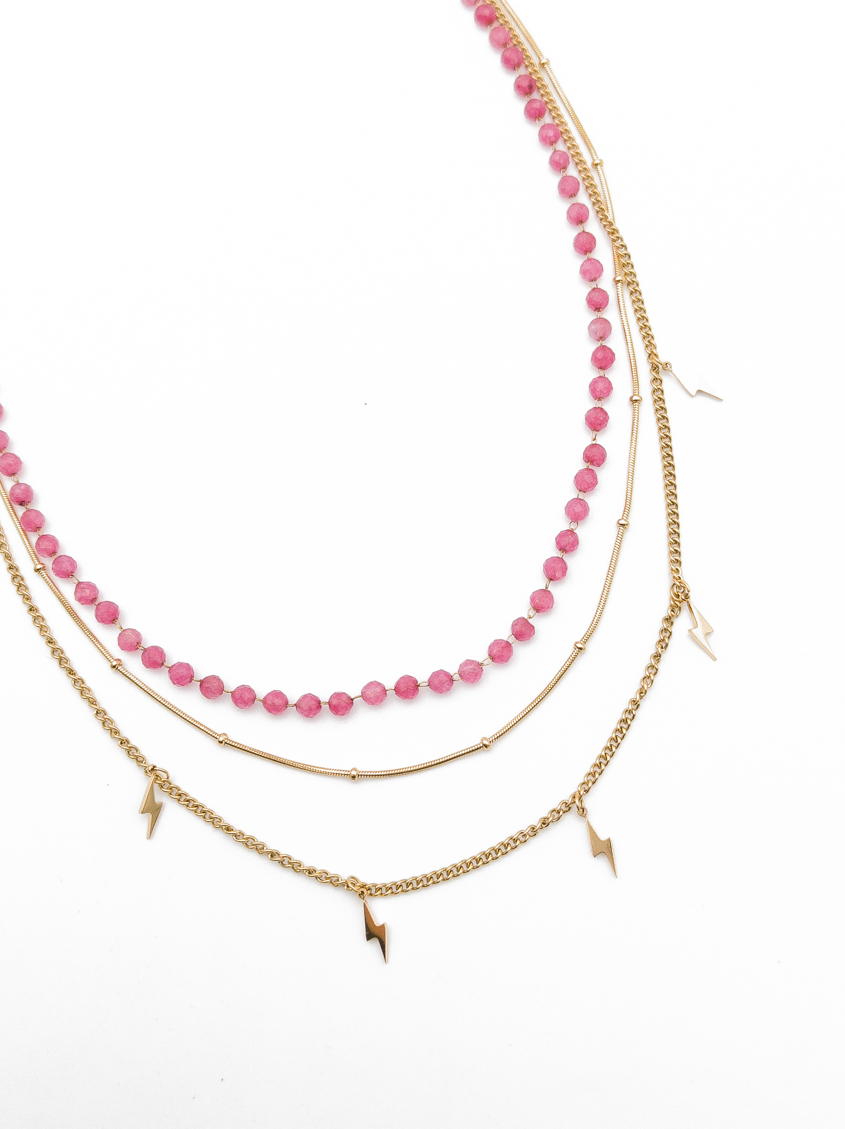 Una collana a tre fili che si fa notare, grazie ai piccoli pendenti a forma di fulmine che danno carattere a qualsiasi look. La Collana “Fulmini” è pensata per chi cerca un accessorio leggero ma d’impatto, perfetto da indossare ogni giorno con stile.