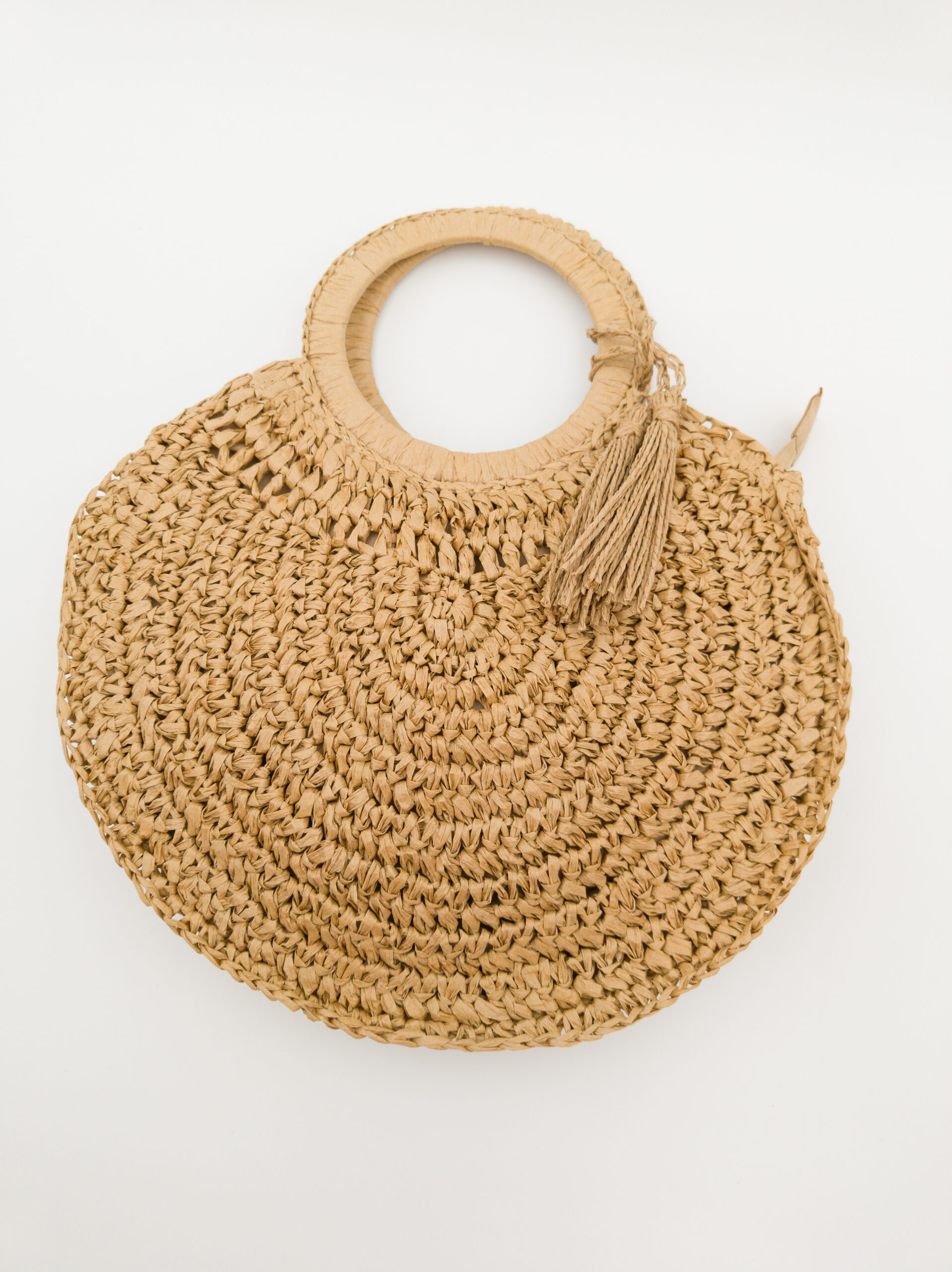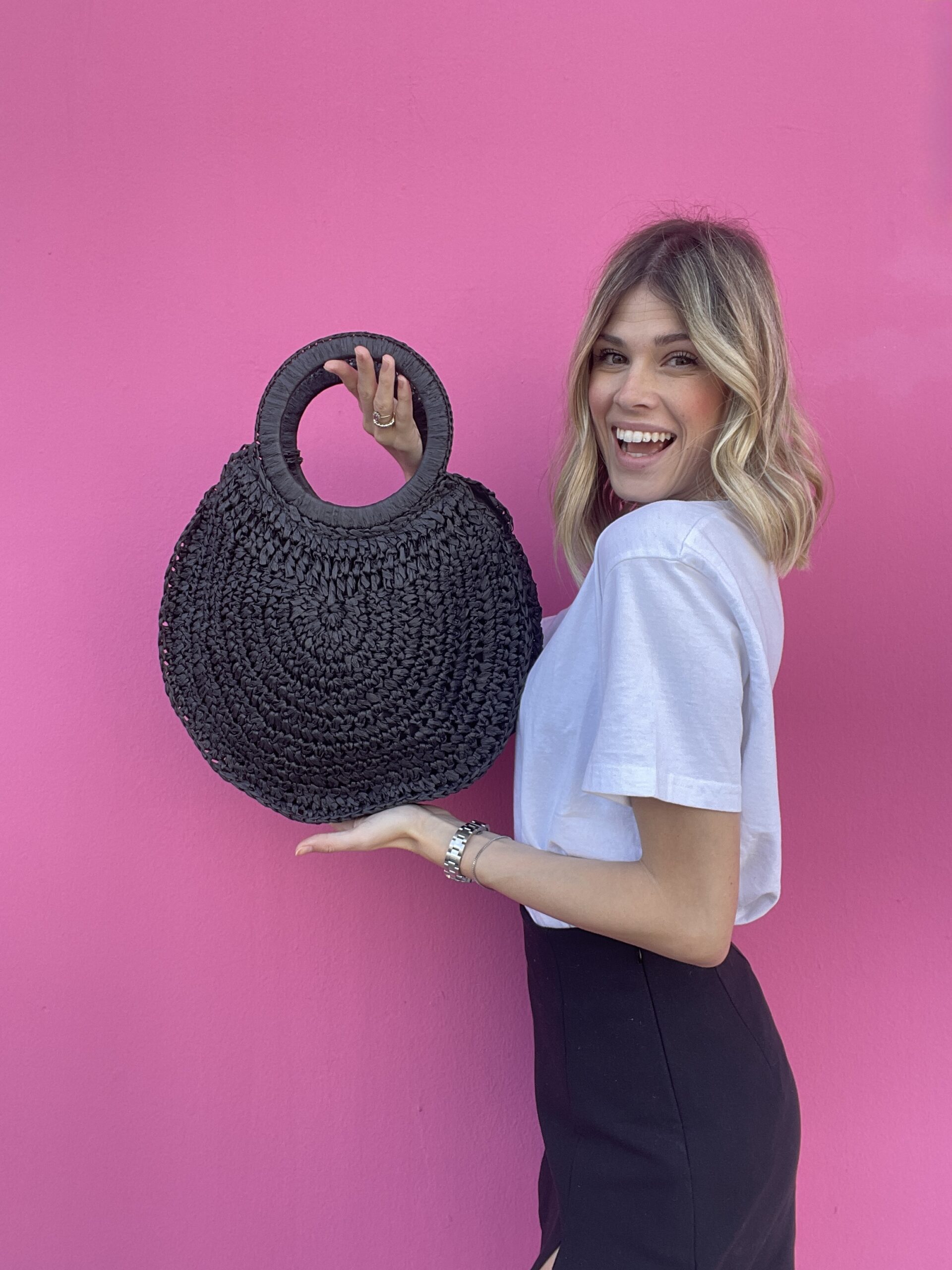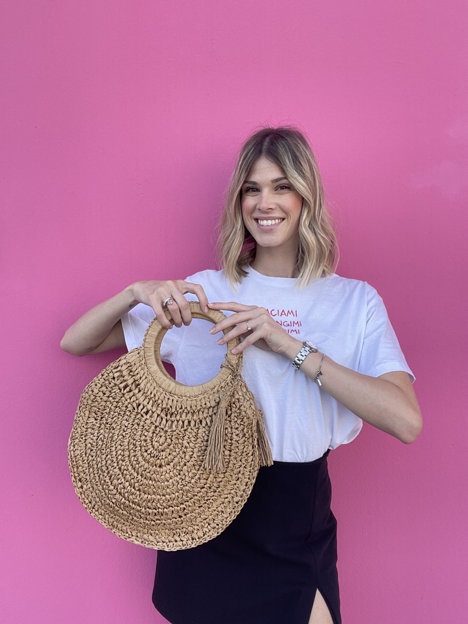Formentera è una borsa a tracolla dalla forma rotonda, compatta e leggera, perfetta per accompagnarti nelle giornate più calde. Realizzata in 100% paper con lavorazione intrecciata, è un accessorio pratico e originale, ideale per completare un look casual estivo.