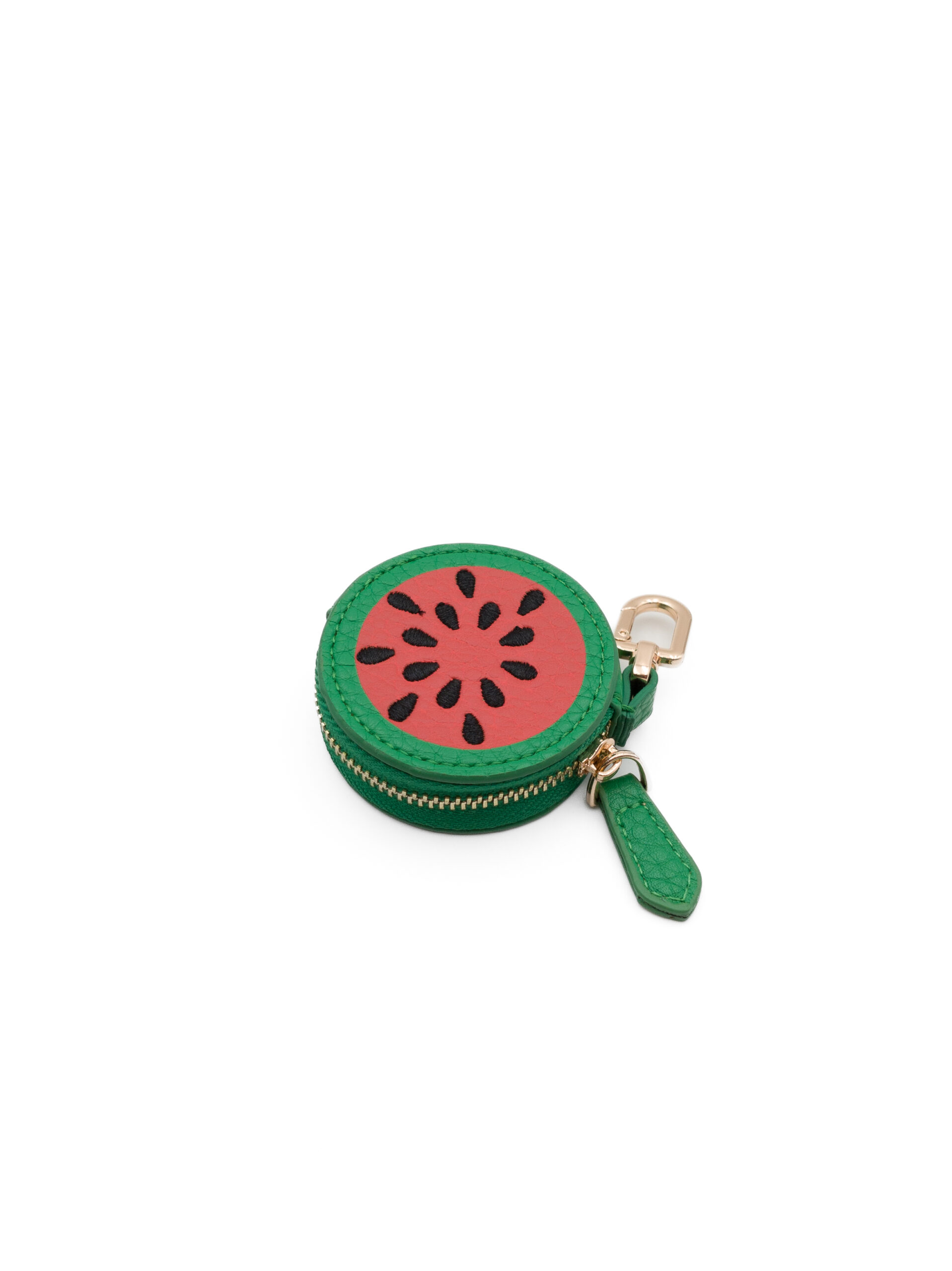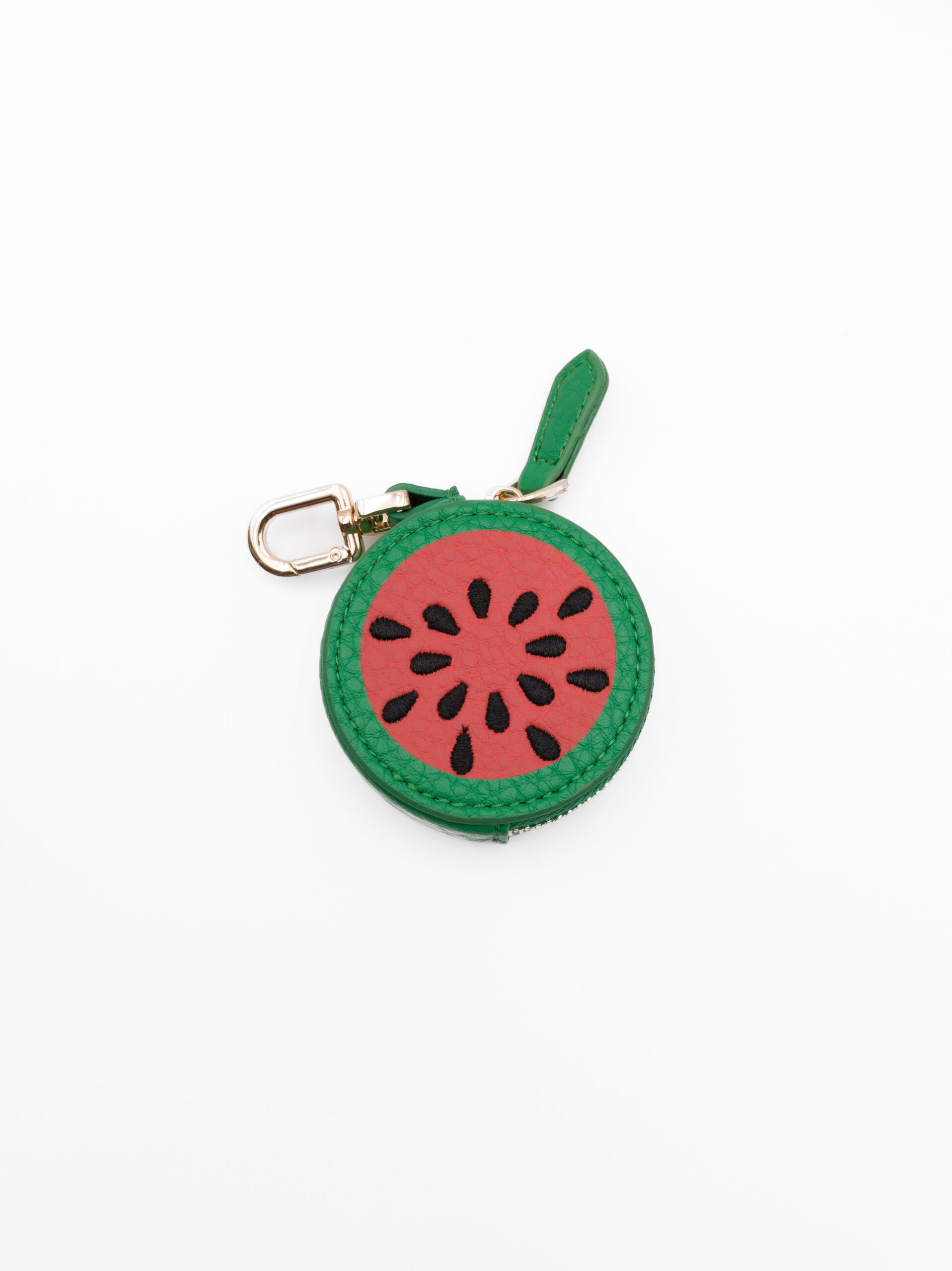Non solo un accessorio decorativo, ma anche un piccolo contenitore funzionale: grazie alla zip, Fruttino può custodire chiavi, monete, AirPods o piccoli oggetti da tenere sempre a portata di mano. Il gancetto con hardware gold permette di attaccarlo facilmente alla borsa, allo zaino o di usarlo come portachiavi.