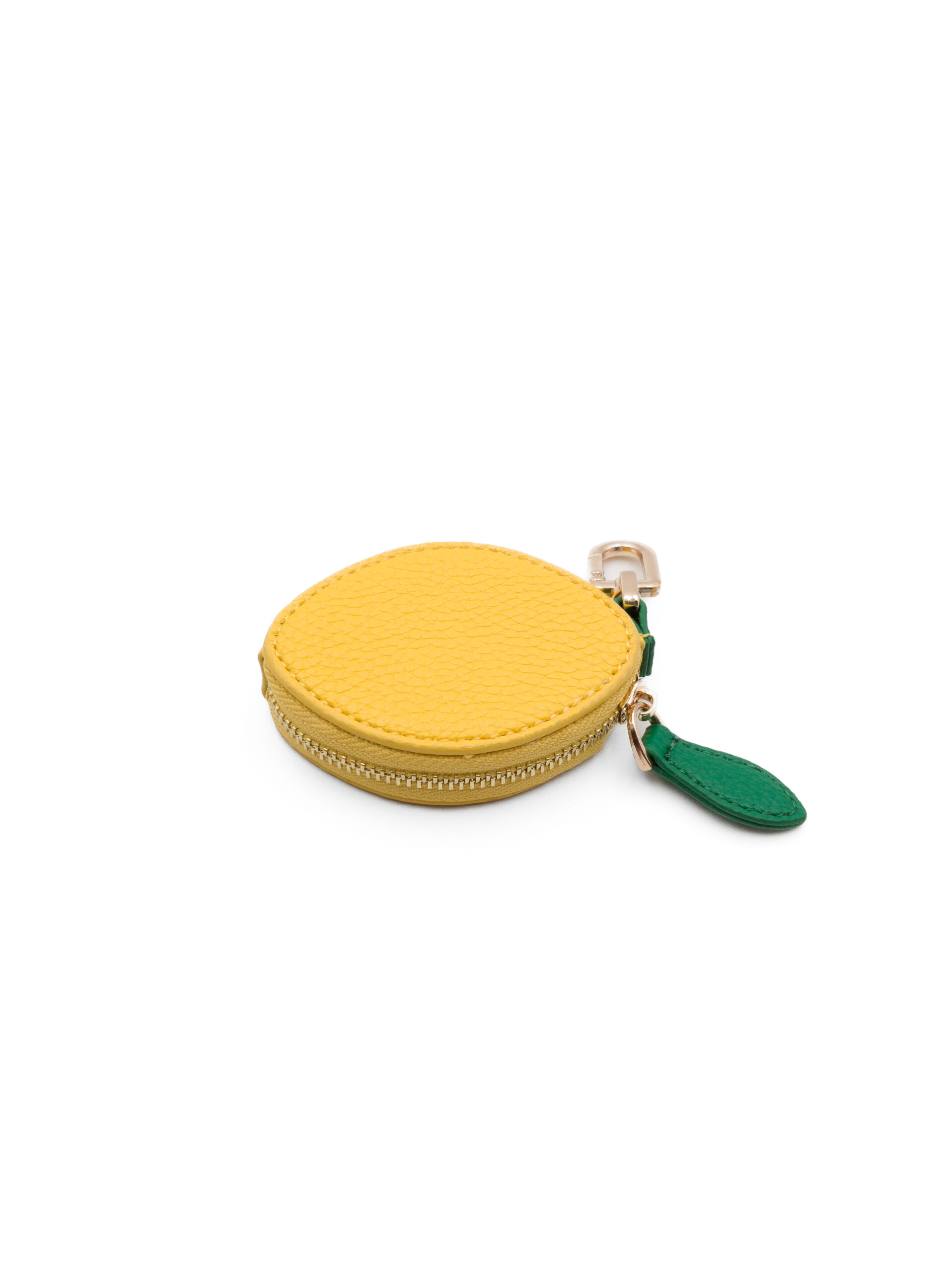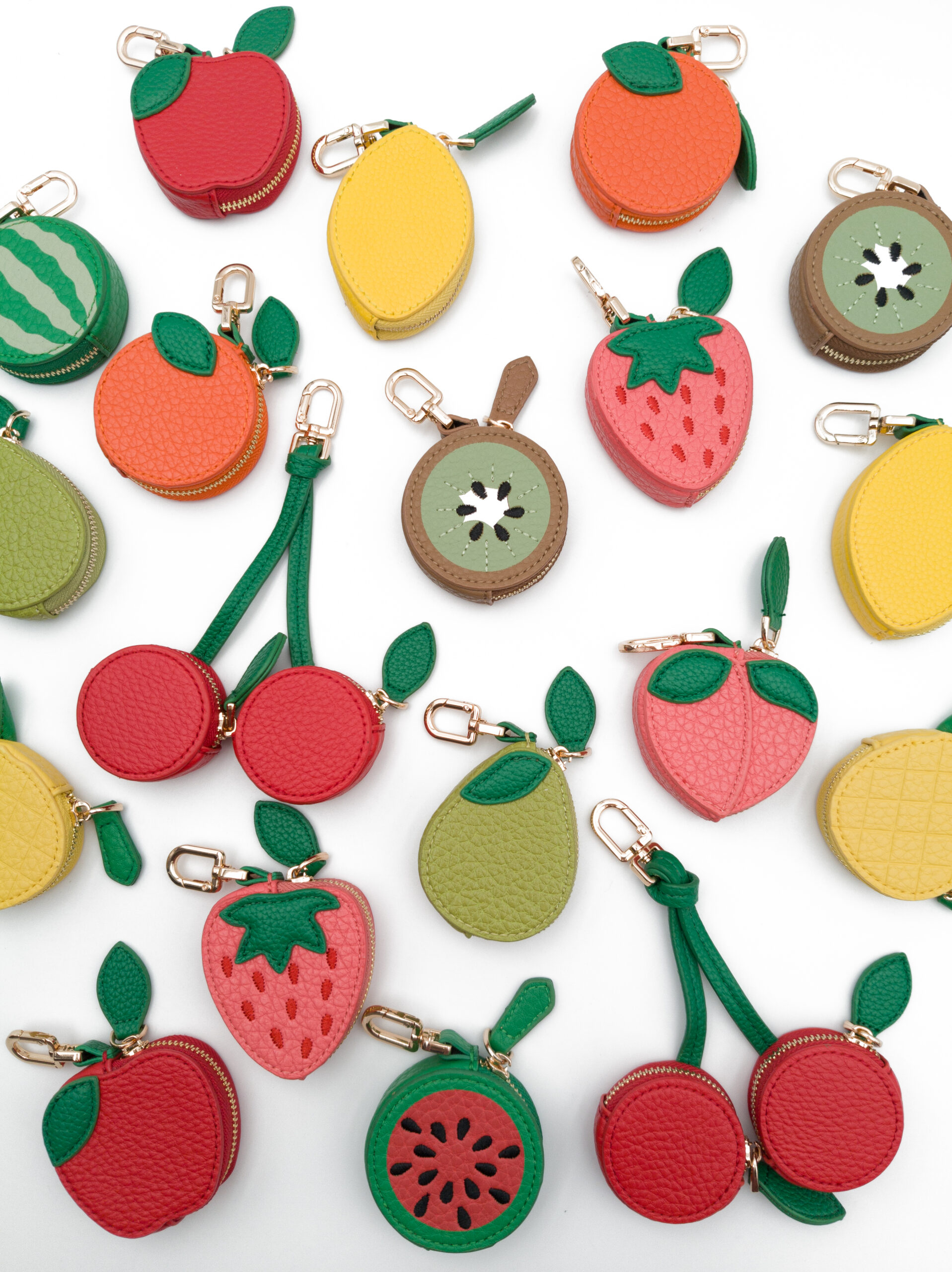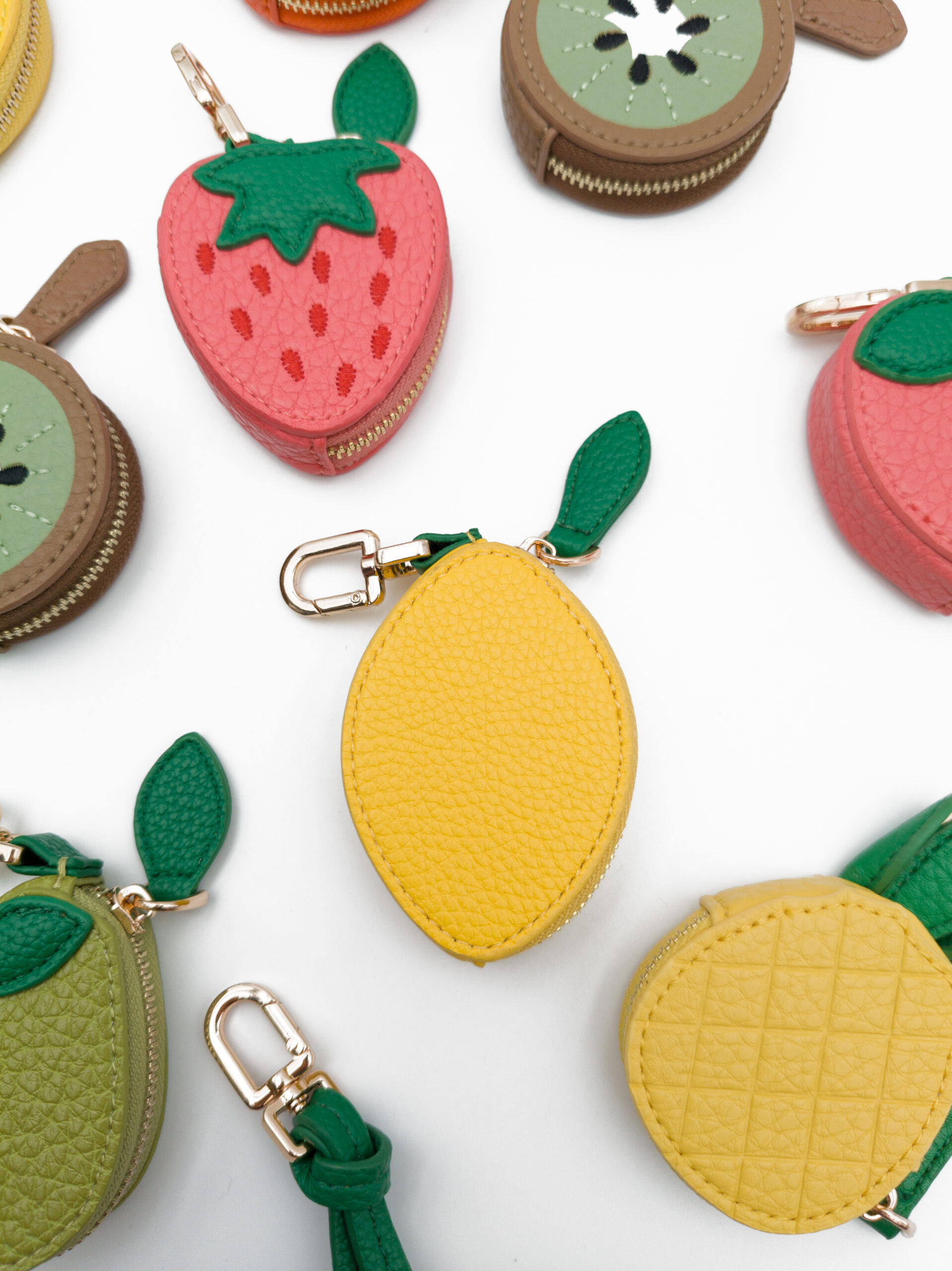 Non solo un accessorio decorativo, ma anche un piccolo contenitore funzionale: grazie alla zip, Fruttino può custodire chiavi, monete, AirPods o piccoli oggetti da tenere sempre a portata di mano. Il gancetto con hardware gold permette di attaccarlo facilmente alla borsa, allo zaino o di usarlo come portachiavi.