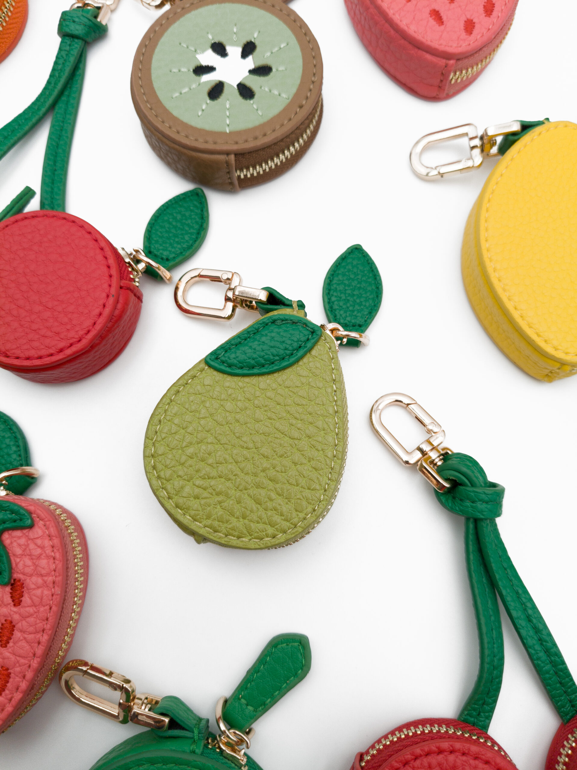 Non solo un accessorio decorativo, ma anche un piccolo contenitore funzionale: grazie alla zip, Fruttino può custodire chiavi, monete, AirPods o piccoli oggetti da tenere sempre a portata di mano. Il gancetto con hardware gold permette di attaccarlo facilmente alla borsa, allo zaino o di usarlo come portachiavi.