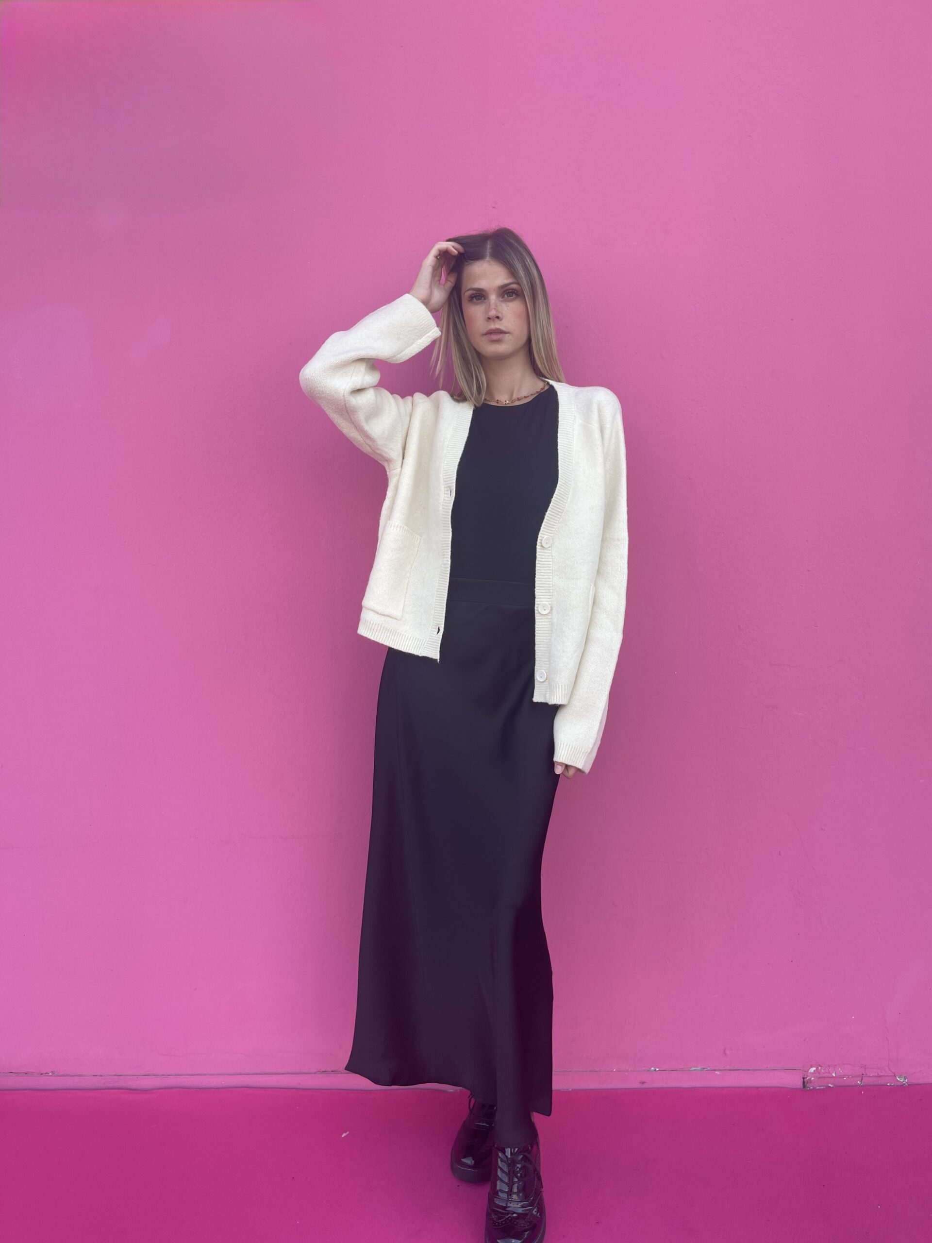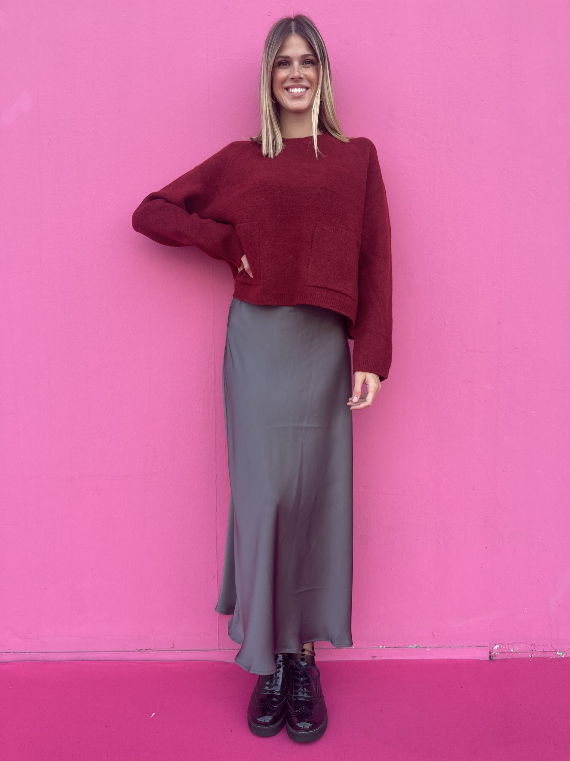 Scopri la nostra Gonna alla caviglia, un capo femminile e versatile che unisce comfort e stile. Realizzata in morbida viscosa con effetto raso lucido, scivola delicatamente sulla figura, donando un movimento elegante ad ogni passo. L’elastico sul retro assicura una vestibilità comoda e adattabile, rendendo questa gonna perfetta sia per look quotidiani che per occasioni speciali.