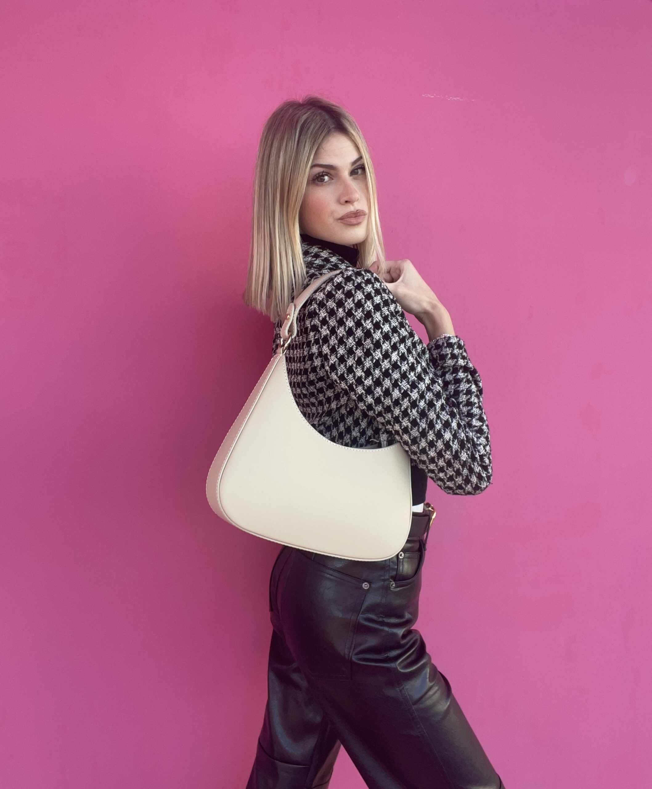 La borsa Lola è l’accessorio must-have della stagione. Realizzata in vera pelle e interamente Made in Italy, questa borsa Hobo combina stile e funzionalità in un design strutturato ed elegante. Il suo hardware dorato aggiunge un tocco di lusso, mentre la forma versatile la rende perfetta sia da portare a spalla o a mano. Per chi ama la praticità, è inclusa anche una tracolla per un look ancora più dinamico.