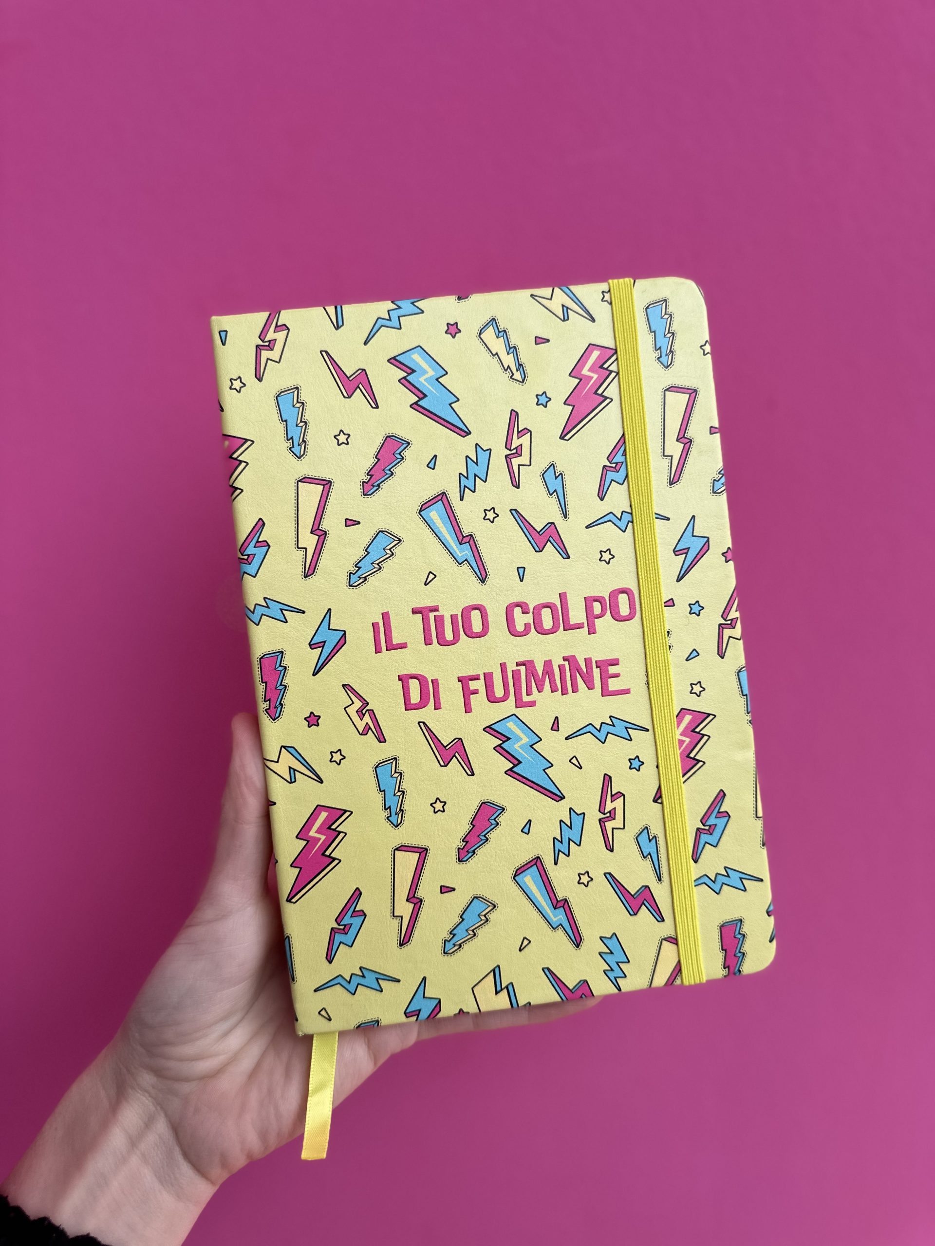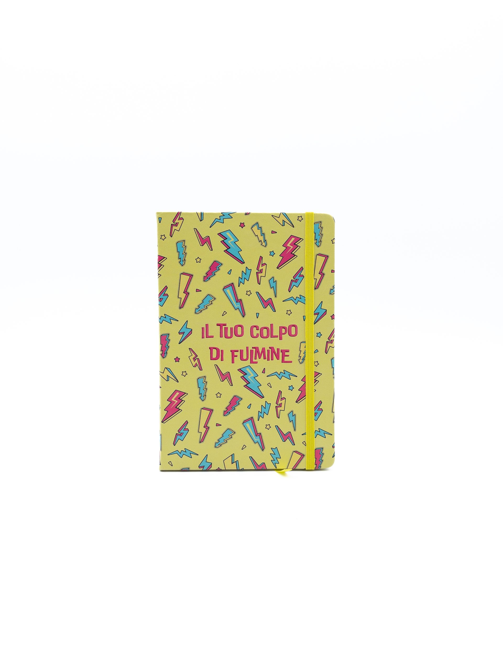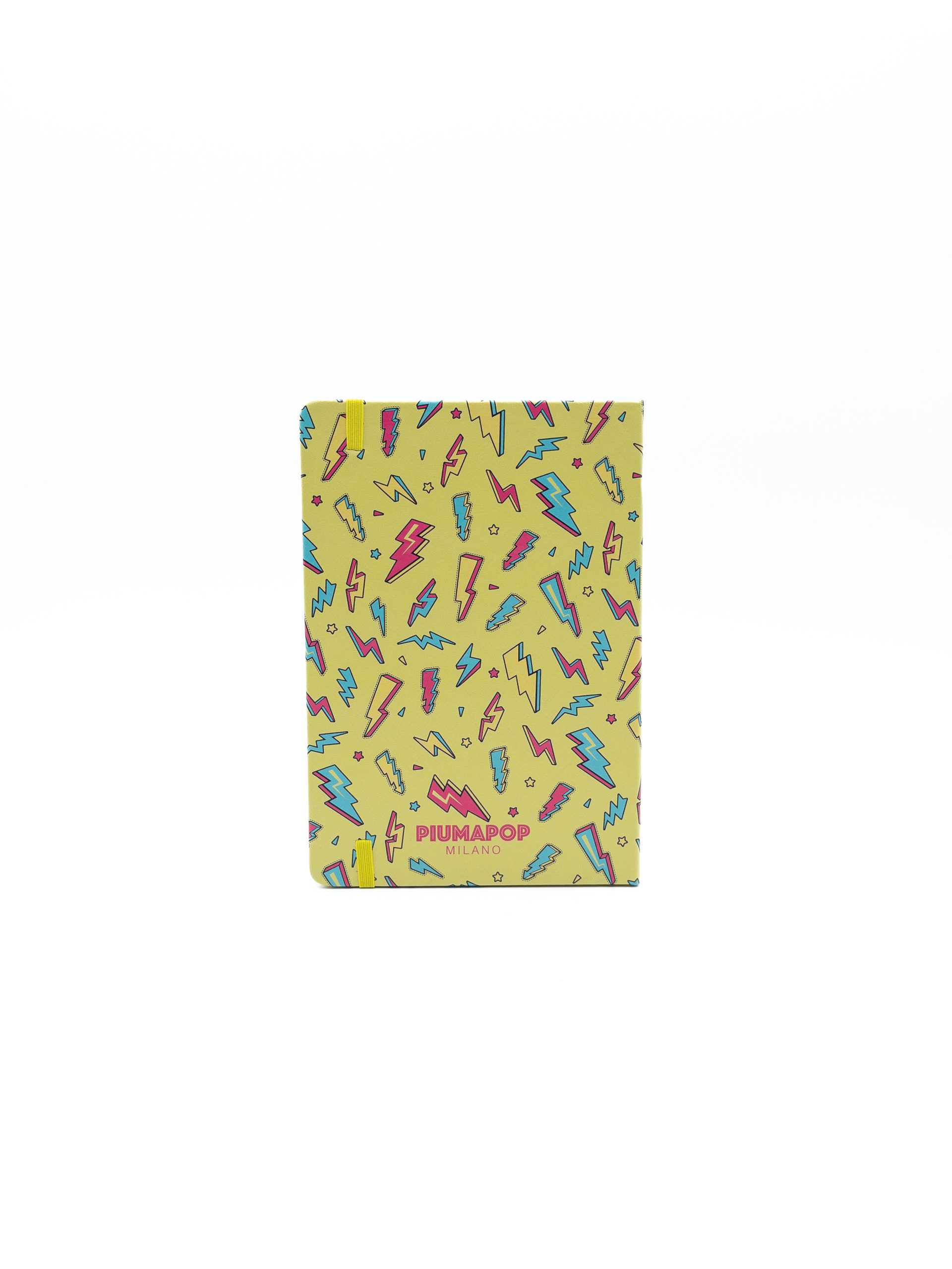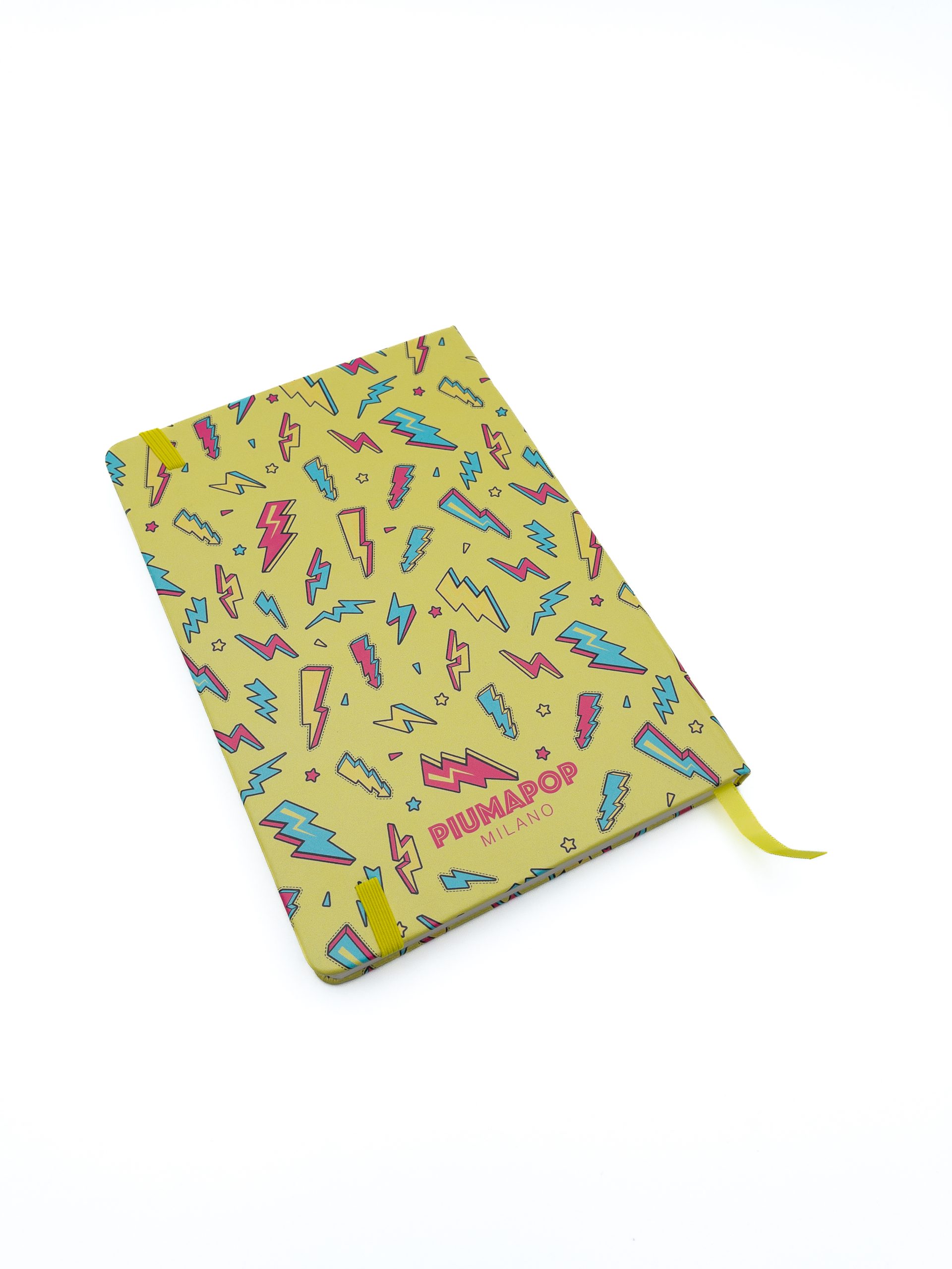 Copertina Rigida, angoli arrotondati, chiusura con elastico e segnalibro giallo, carta 80mg