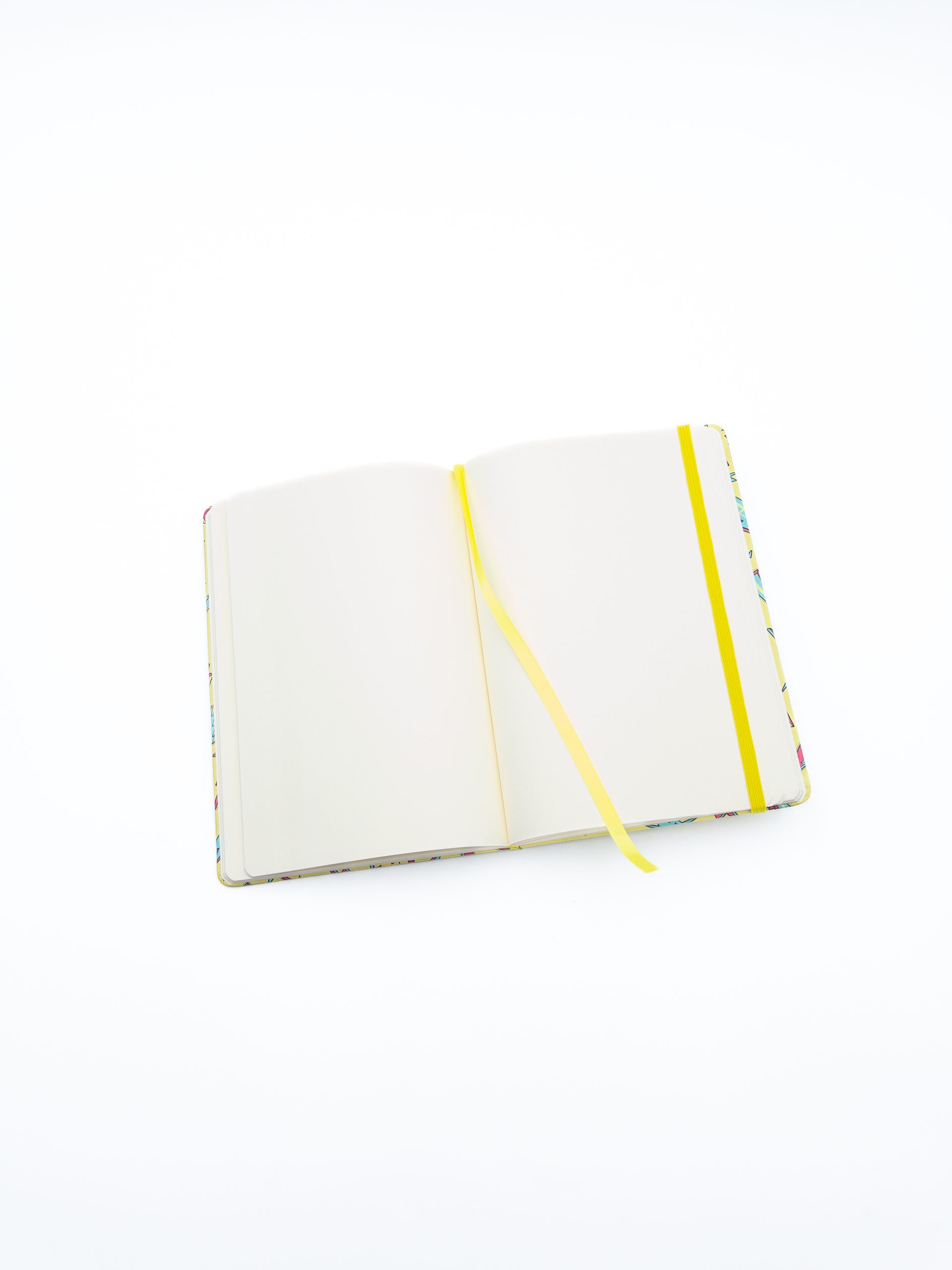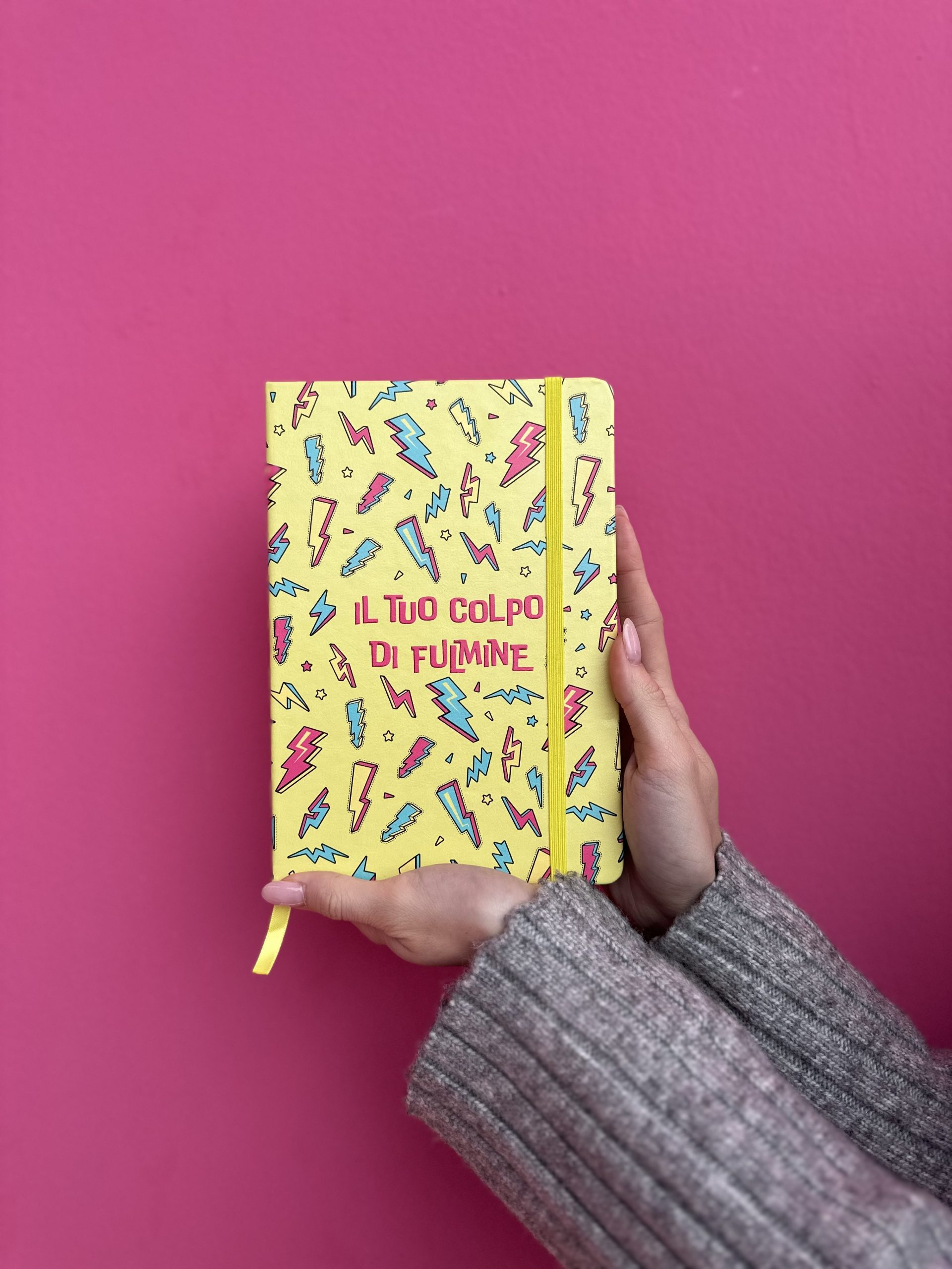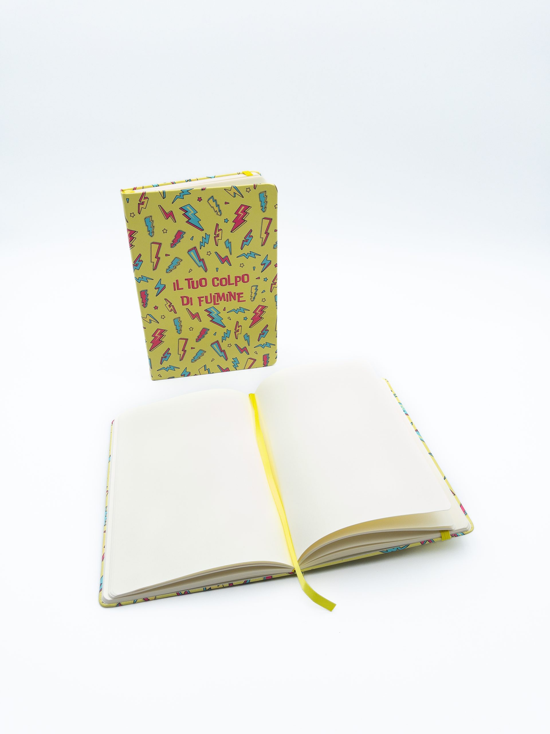 Copertina Rigida, angoli arrotondati, chiusura con elastico e segnalibro giallo, carta 80mg