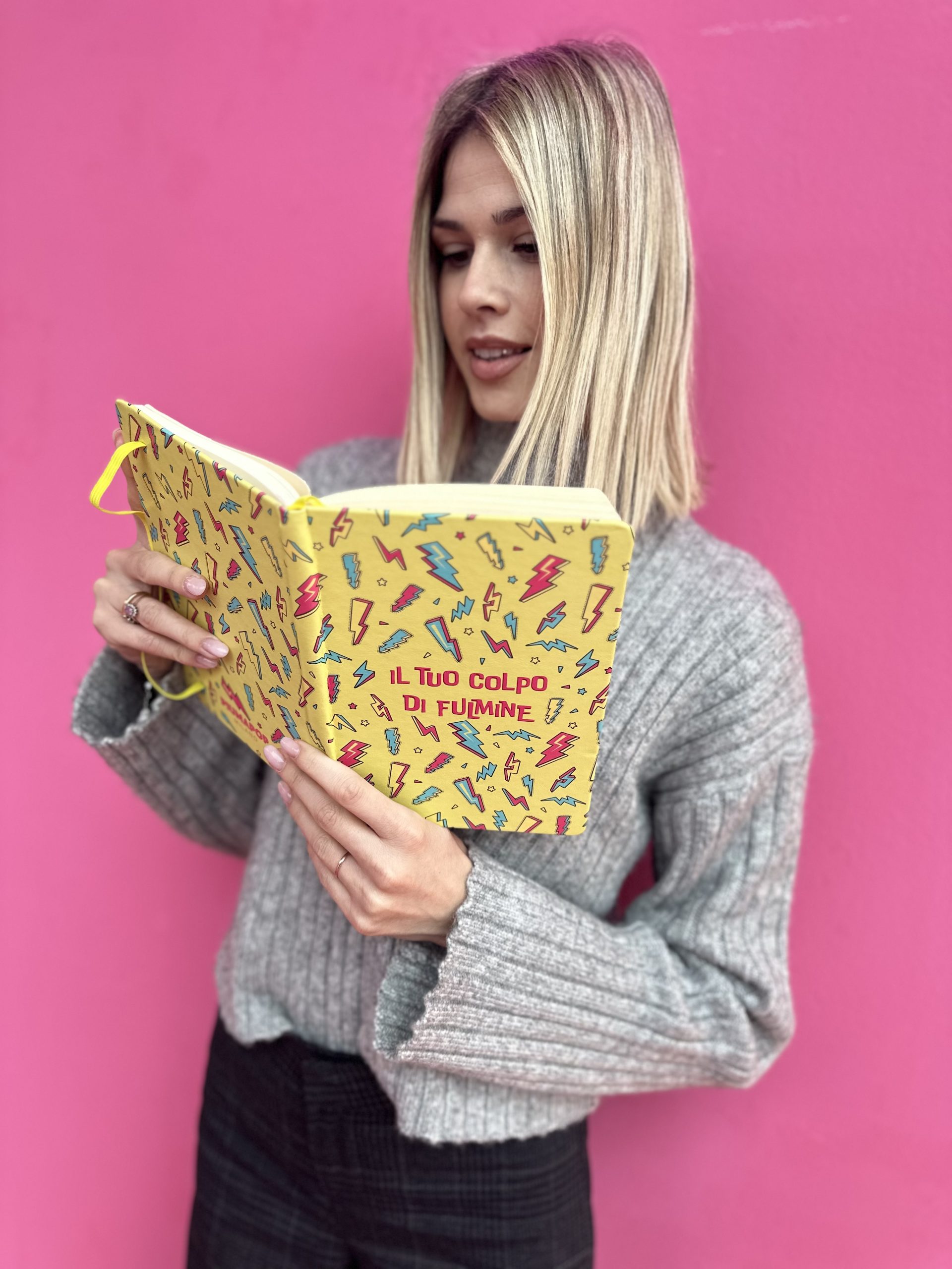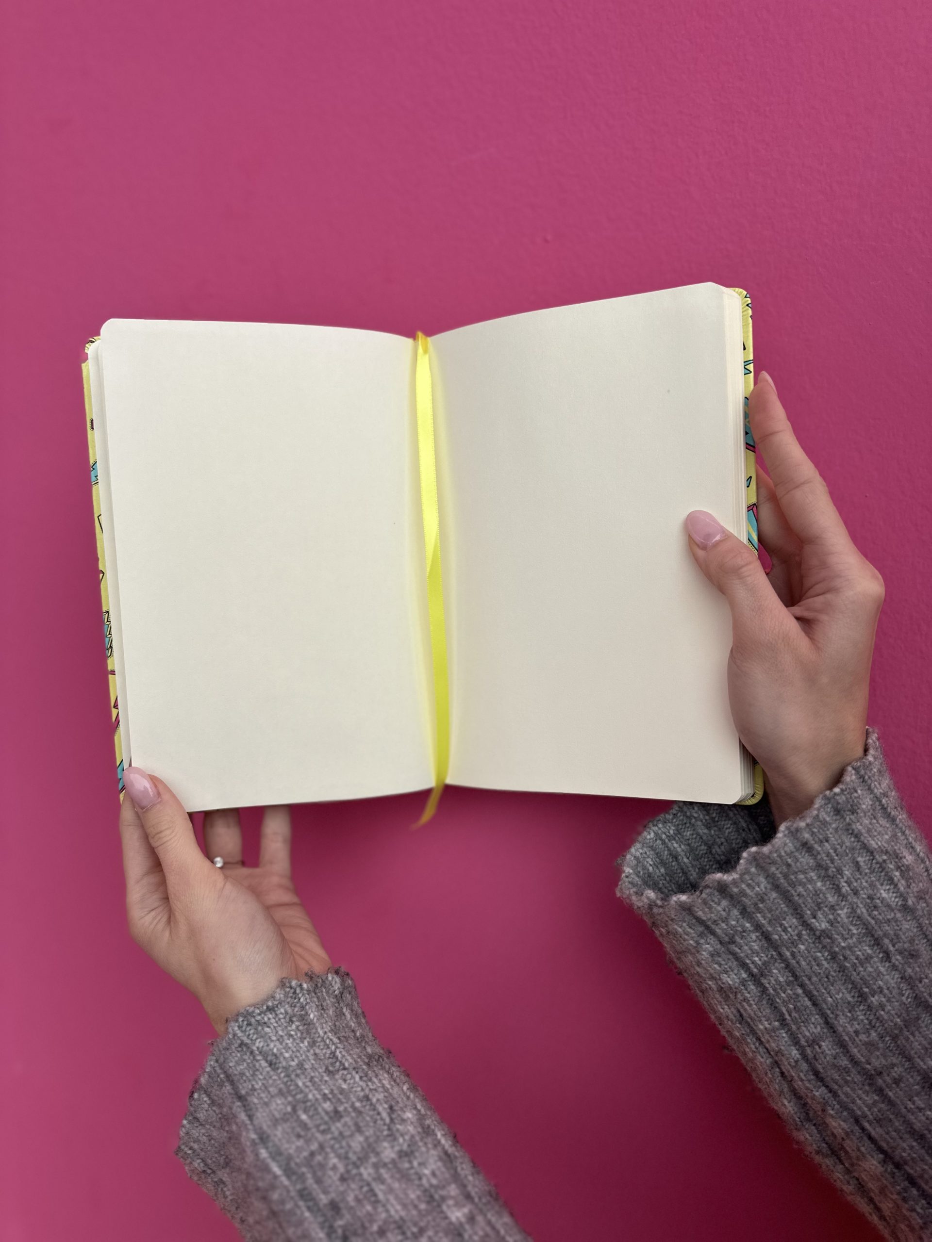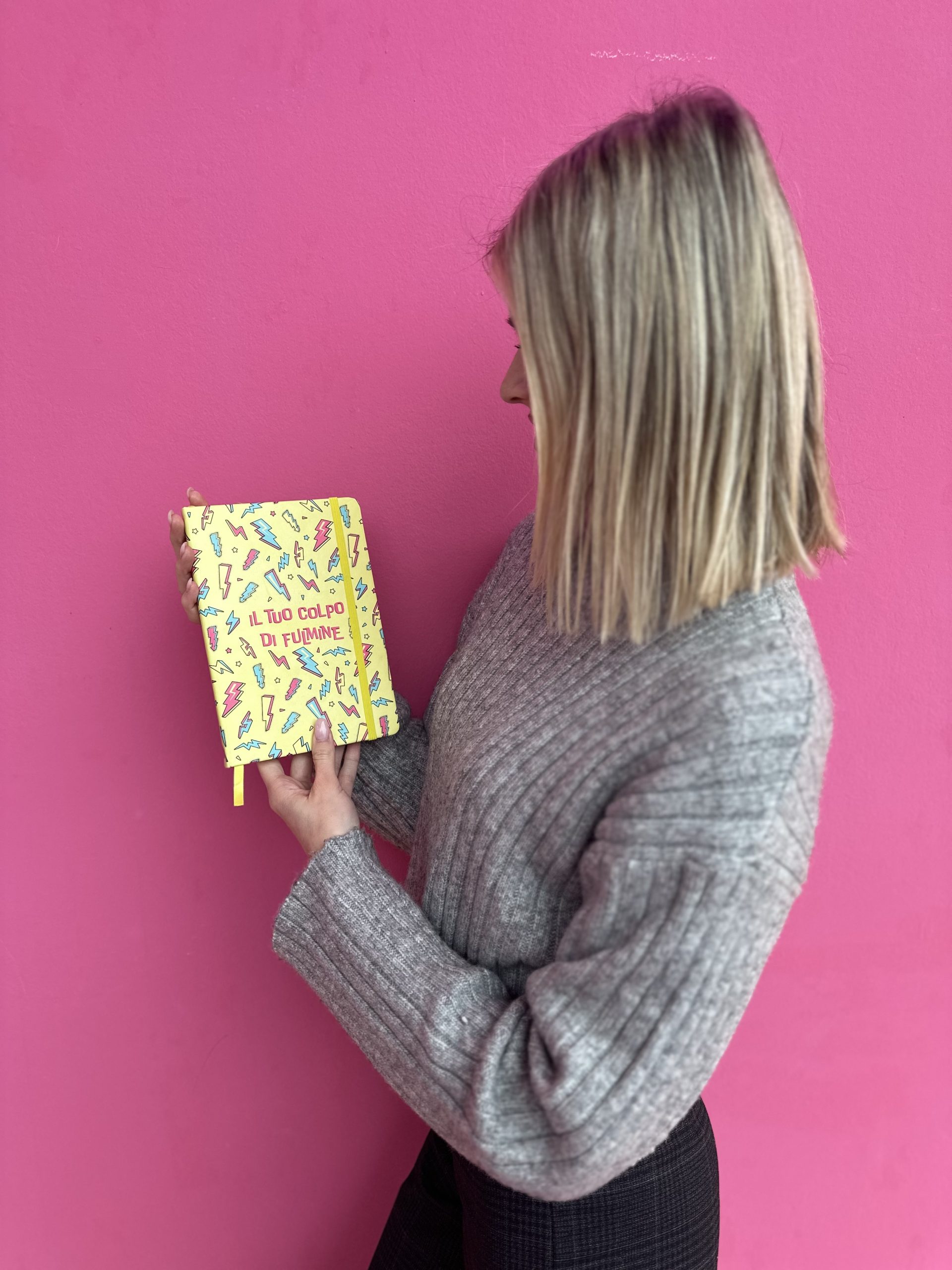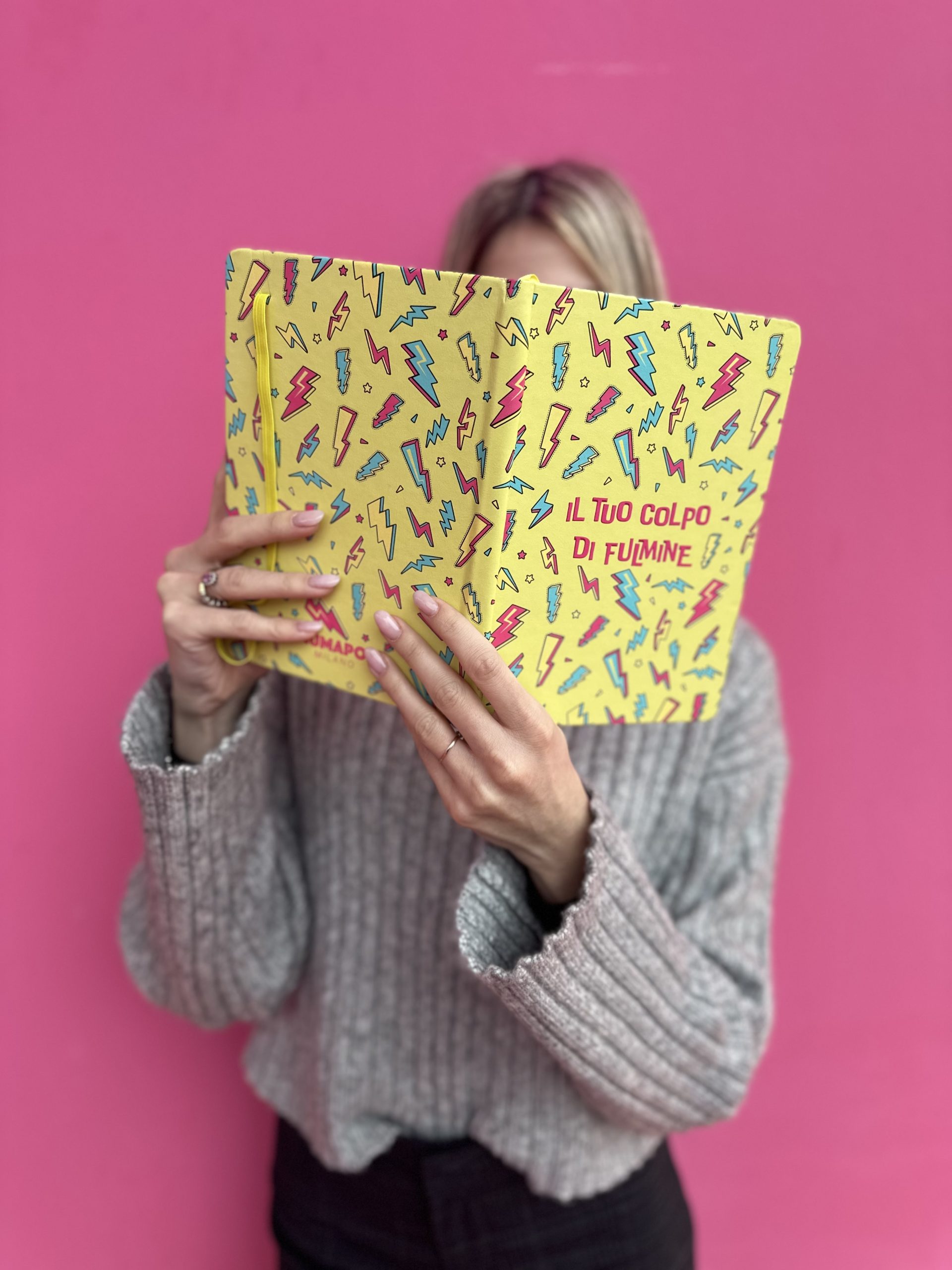 Copertina Rigida, angoli arrotondati, chiusura con elastico e segnalibro giallo, carta 80mg