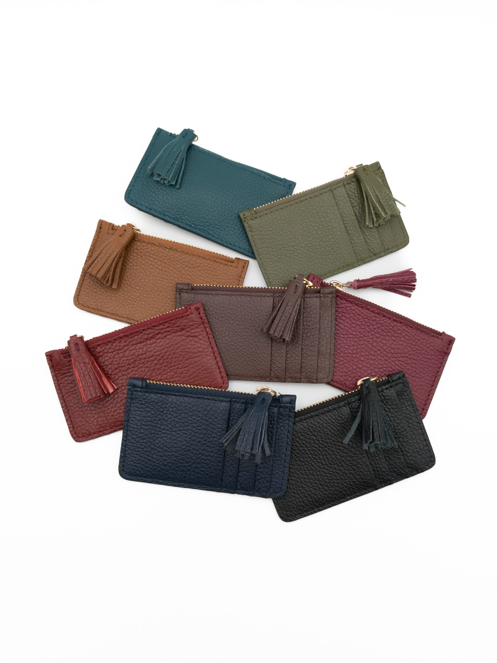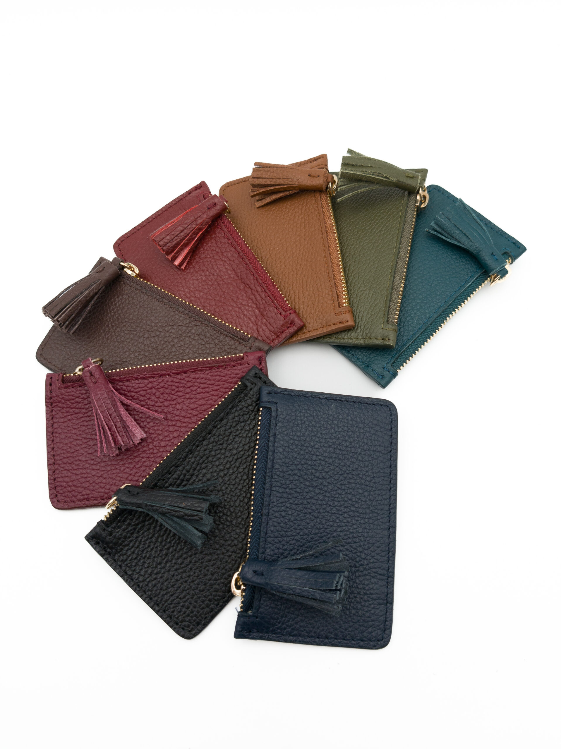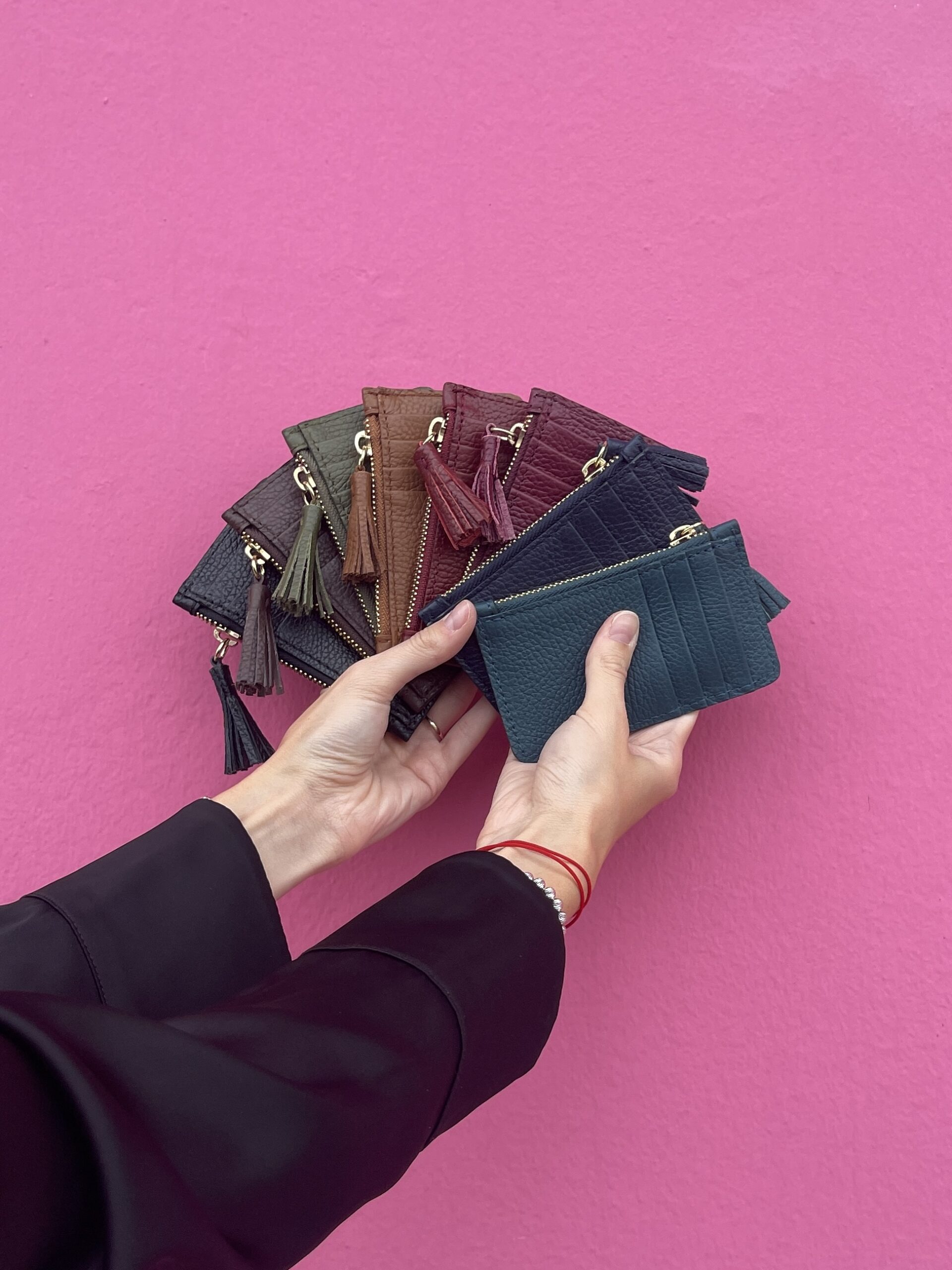 Il Portacarte è l’accessorio ideale per tenere tutto sotto controllo con stile. Realizzato in pelle martellata Made in Italy, unisce funzionalità e design in uno spazio compatto. Lo scomparto principale con chiusura a zip e nappina in pelle permette di riporre comodamente le monete, mentre le quattro tasche interne sono perfette per carte di credito e tessere. L’hardware con finitura gold completa l’accessorio con un dettaglio luminoso e ricercato, rendendolo perfetto per essere portato sempre con te.