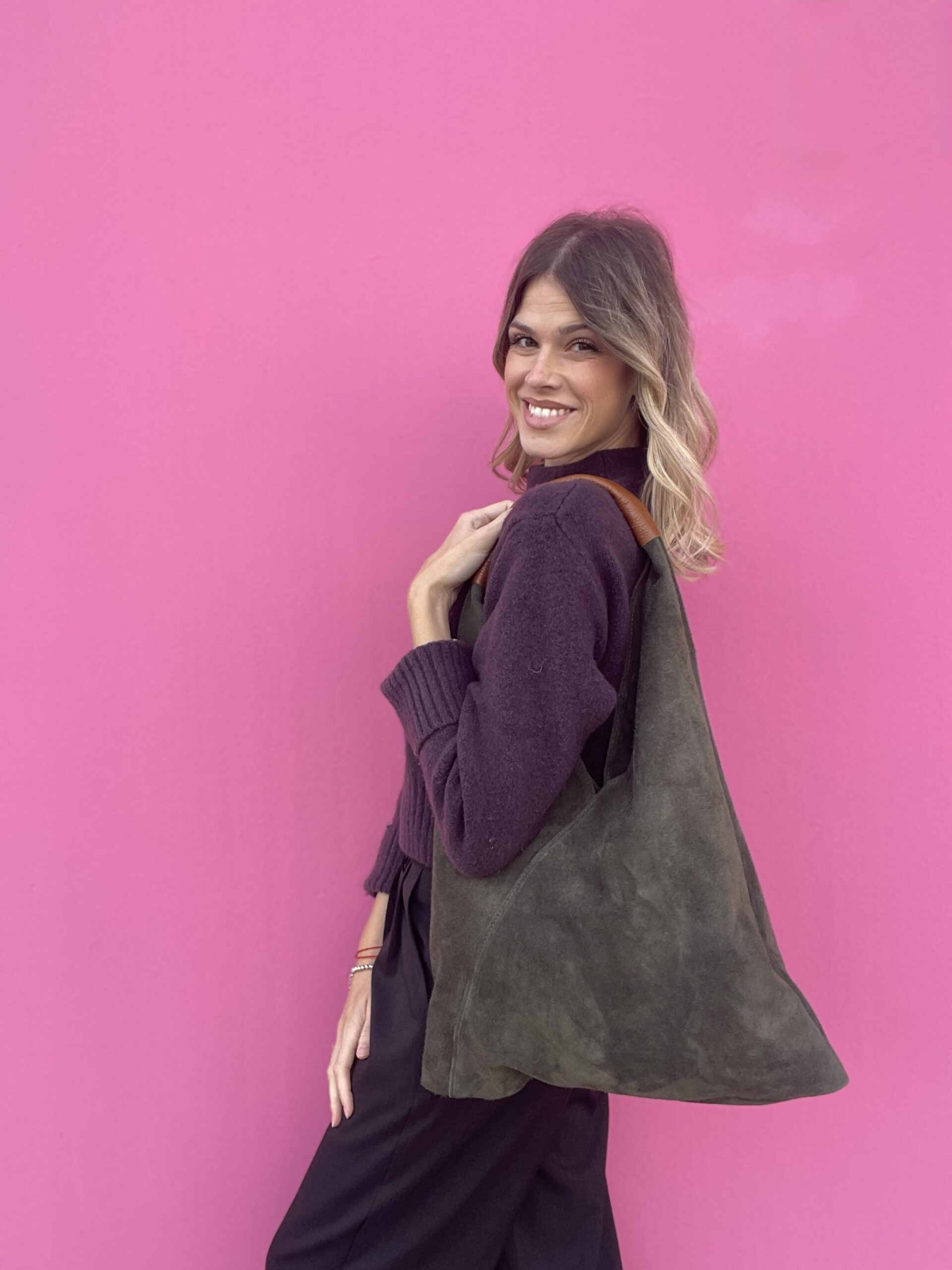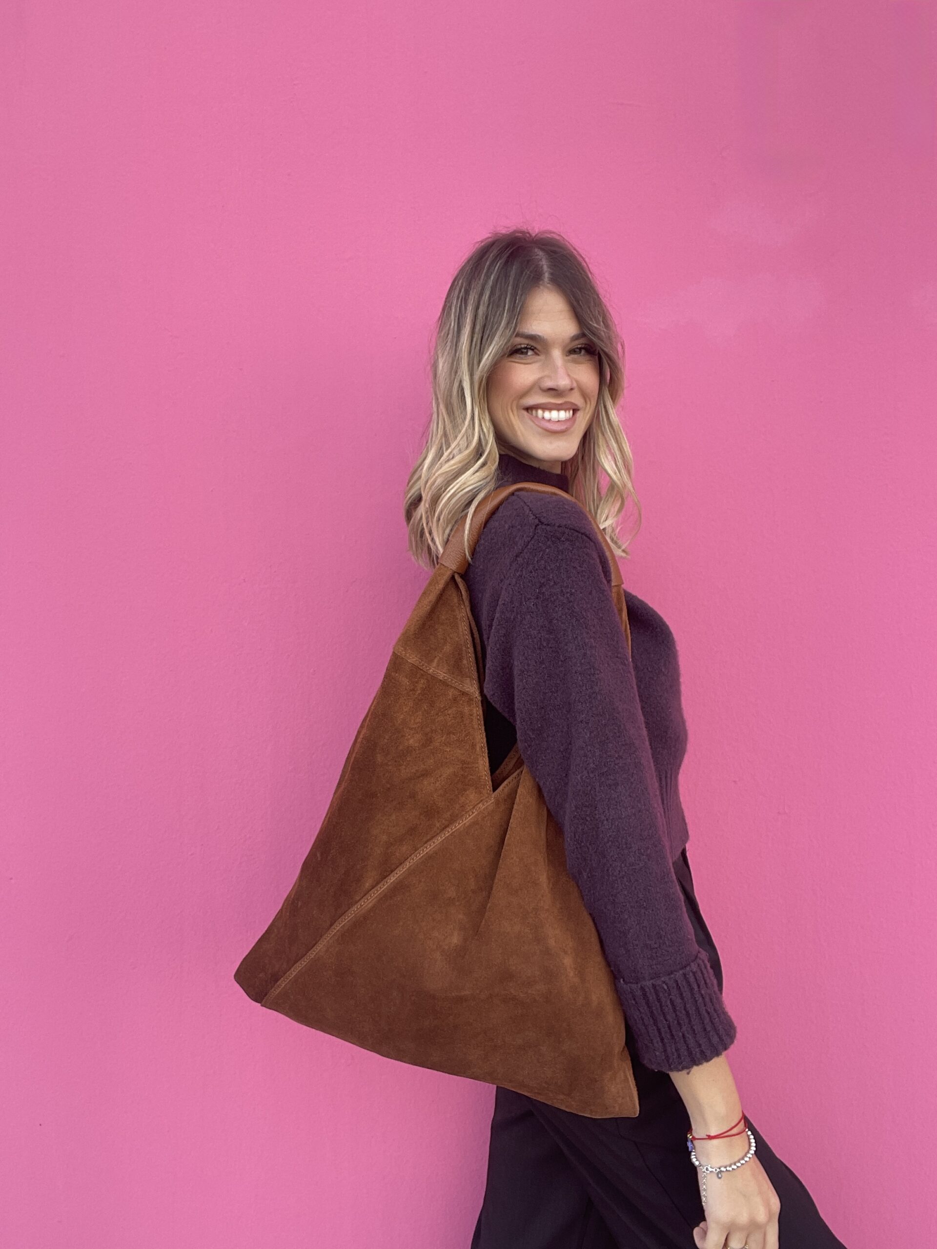 Scopri la Borsa Tokyo, un accessorio dal design moderno e raffinato, caratterizzato da linee essenziali che evocano un’estetica dalle linee pulite. Realizzata in pelle scamosciata, questa borsa non strutturata si distingue per le sue forme squadrate, creando un contrasto affascinante con la morbidezza della pelle.